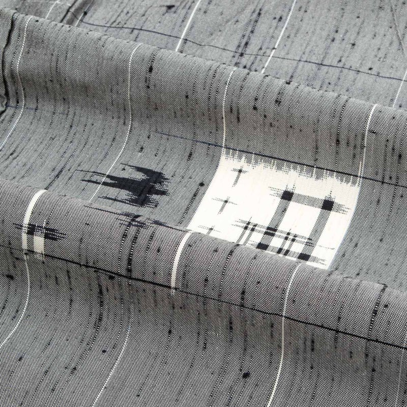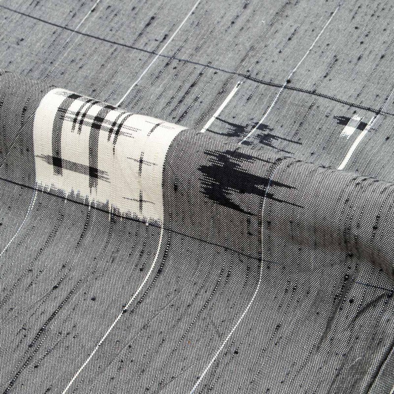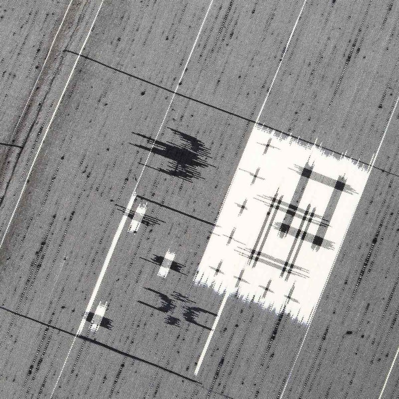 節のある織りに細やかな絣柄が映え、かすれたような線や点がリズムを生み、静かな中に個性を感じさせます。