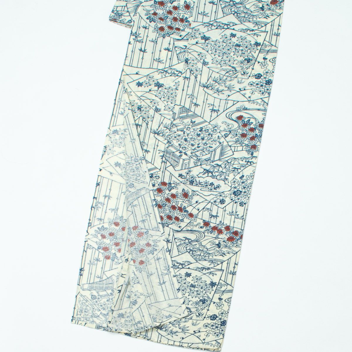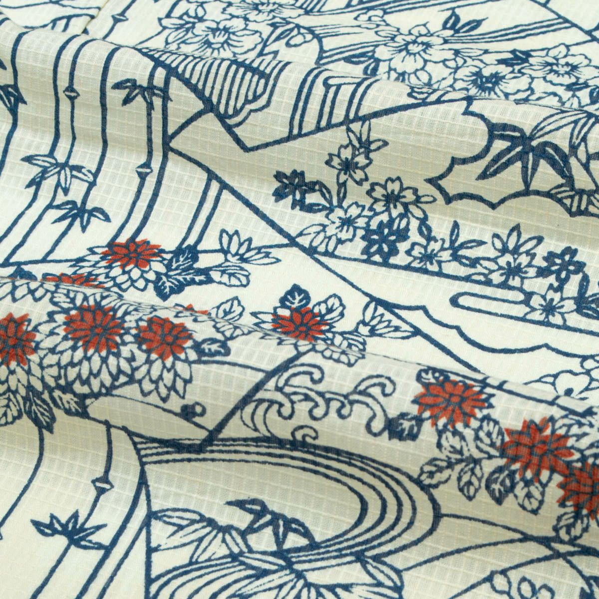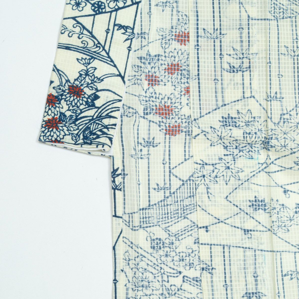 他の画像を見る 【訳あり品】小紋 綿絽 浴衣 型絵染 竹 扇面 四季花 調度品の図 単衣 身丈:約151cm 裄:約63cm 当店特別価格 ¥ 5,500 税込 SOLD OUT 詳細を見る お気に入りに登録する