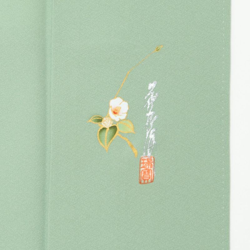 落ち着いた気品漂う、錆青磁(さびせいじ)色の色無地です。