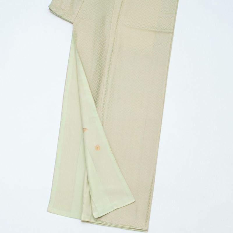 【美品】色無地 小紋 網代 紋意匠 白緑 青磁鼠 正絹 袷です。