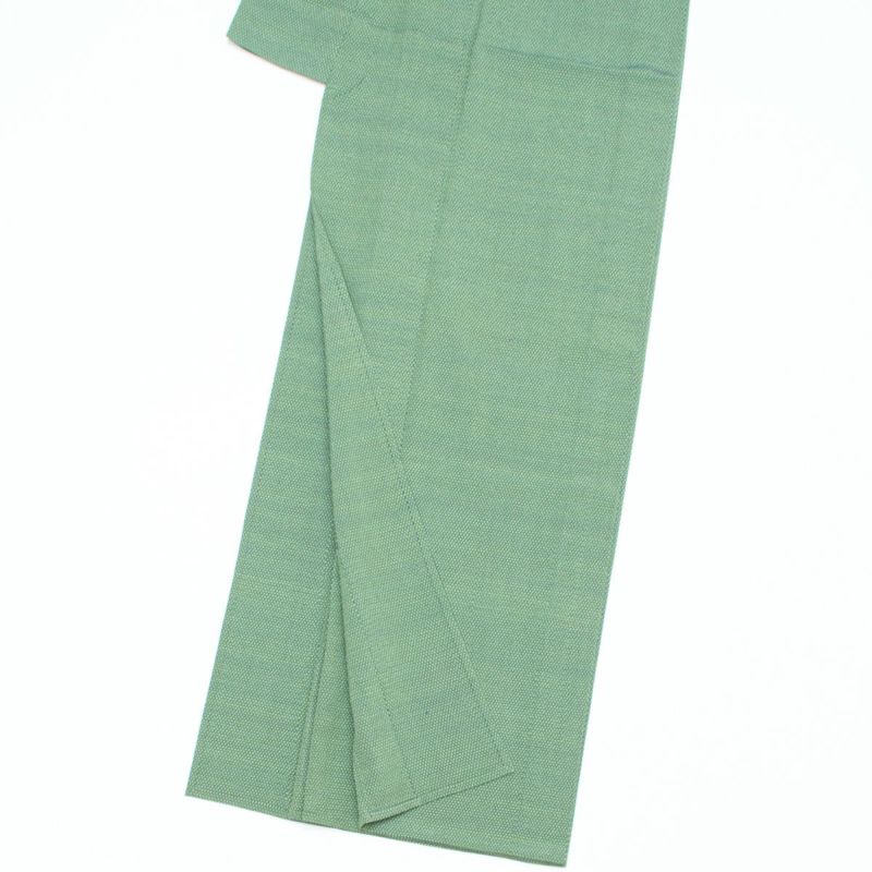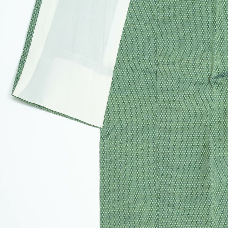 爽やかな松葉色が清涼感を演出し、細やかな絣模様が上品な表情を添えています。