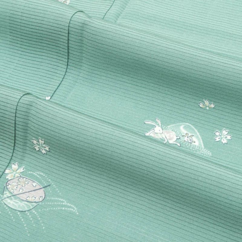 遊び心のあるデザインながら、青磁という上品な色合いが全体を引き締め、品のある着姿を演出します。