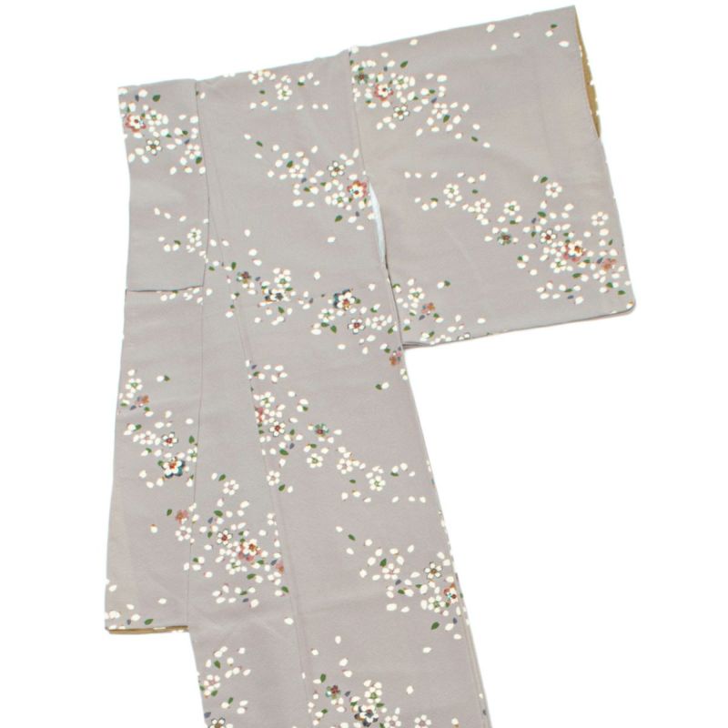 【美品】小紋 友禅 桜の花散らし 霞色 正絹 袷です。