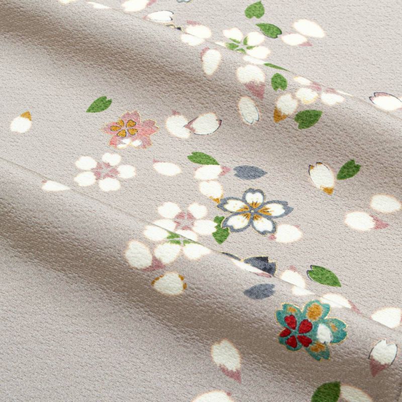 やわらかな霞色の地に、桜の花を舞わせた愛らしい小紋です。