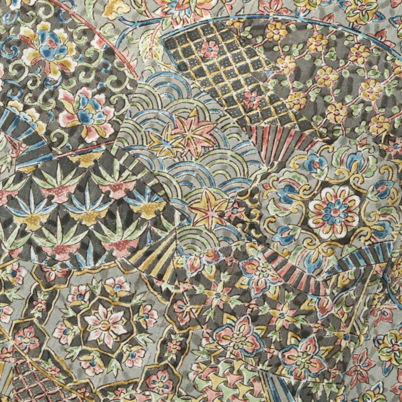 落ち着いた深みのある地色に、赤系・青系・緑系などの柔らかな色彩が映え、年代を問わずお召しいただける上品な佇まいです。