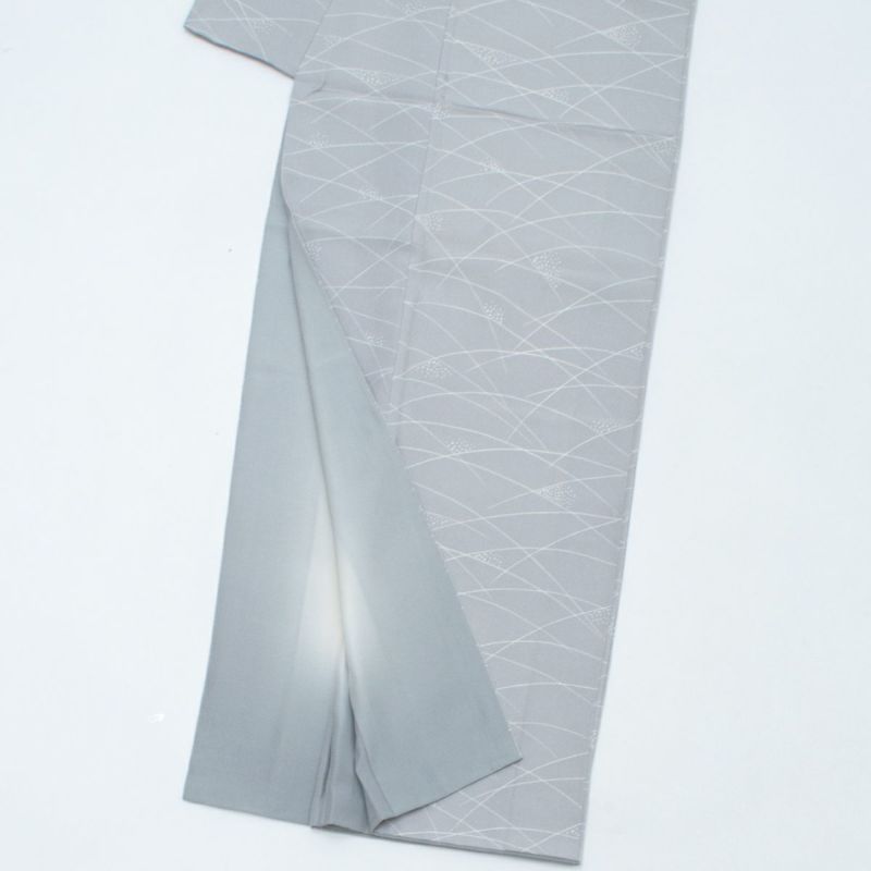 小紋 友禅 芝と穂の図 グレー 縮緬 正絹 袷です。