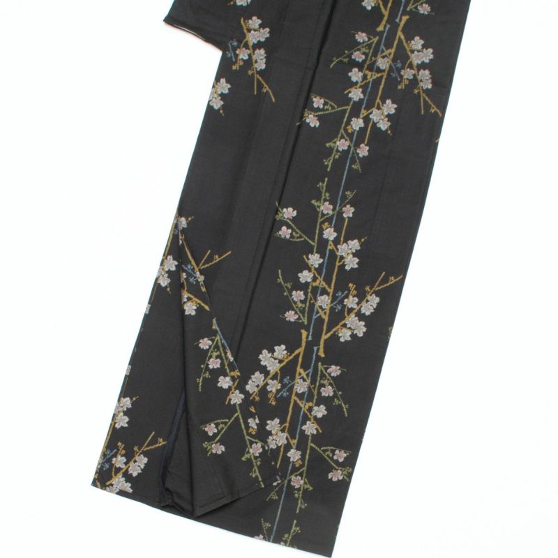 縦に流れるように配置された桜の枝が、すっきりとした印象を与え、着姿を美しく引き立ててくれます。