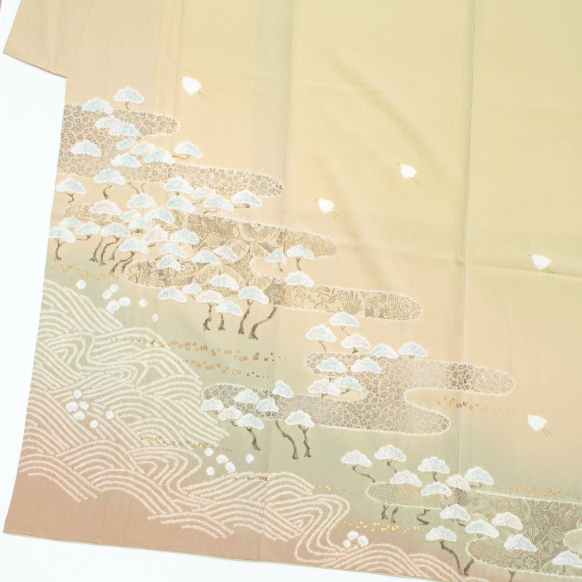 他の画像を見る 訪問着 友禅 絞り 千鳥 波文 松林 ベージュ 縮緬 紋意匠 正絹 袷 身丈:約157cm 裄:約65cm 当店特別価格 ¥ 18,900 税込 SOLD OUT 詳細を見る お気に入りに登録する