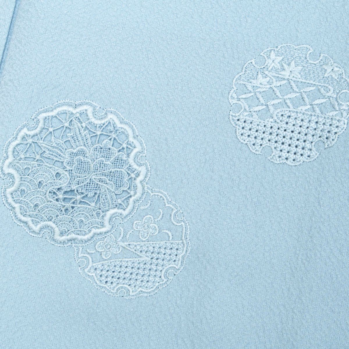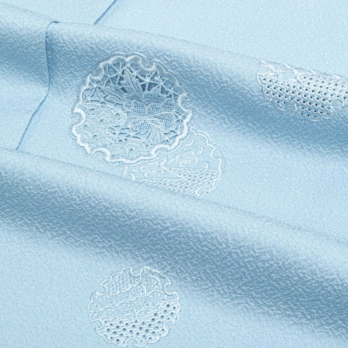 他の画像を見る 付下げ 中国三大刺繍 汕頭刺繍 雪輪 丸文 色無地風 水色 縫い一つ紋 丸に立ち沢瀉 正絹 袷 身丈:約158cm 裄:約63cm 当店特別価格 ¥ 8,800 税込 SOLD OUT 詳細を見る お気に入りに登録する