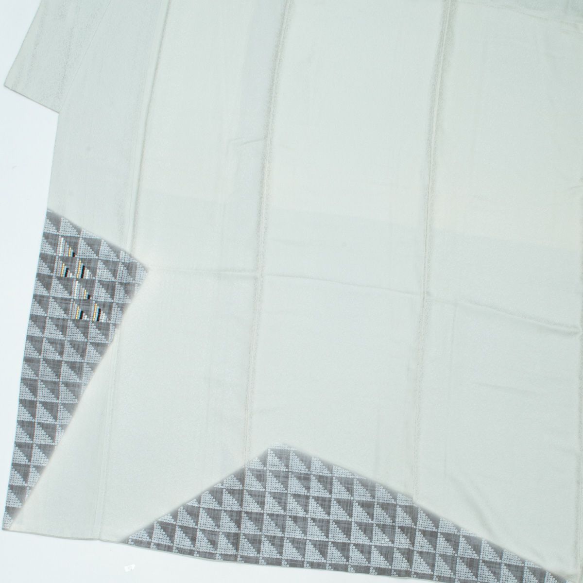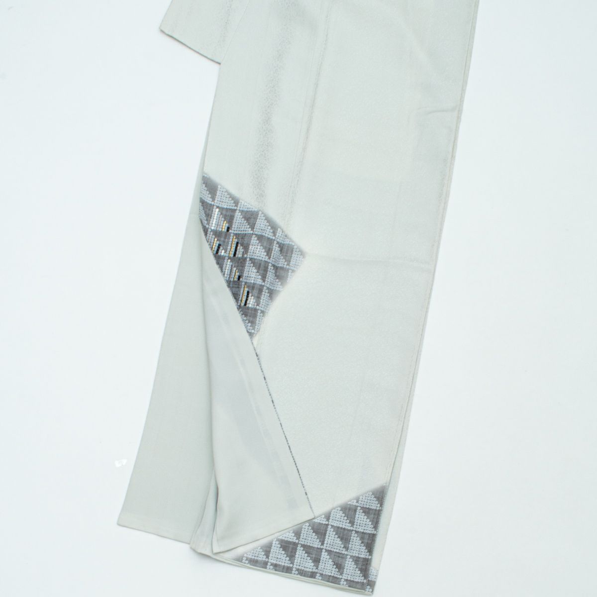 他の画像を見る 付下げ 疋田 三つ鱗 刺繍 モダン 卯の花色 グレー 白 黒 金 正絹 袷 身丈:約155cm 裄:約63cm 当店特別価格 ¥ 7,700 税込 SOLD OUT 詳細を見る お気に入りに登録する