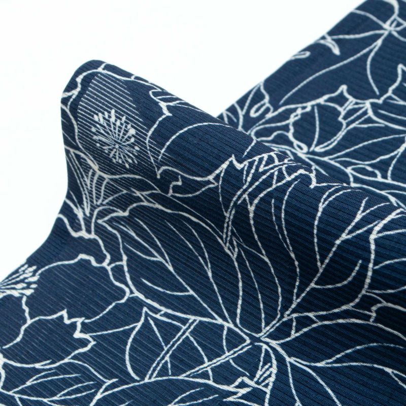 細密に描かれた草花の柄行きは、まるでボタニカルアートのように緻密で、落ち着いた色味と洗練された構図が、大人の装いに相応しい品格を添えます。