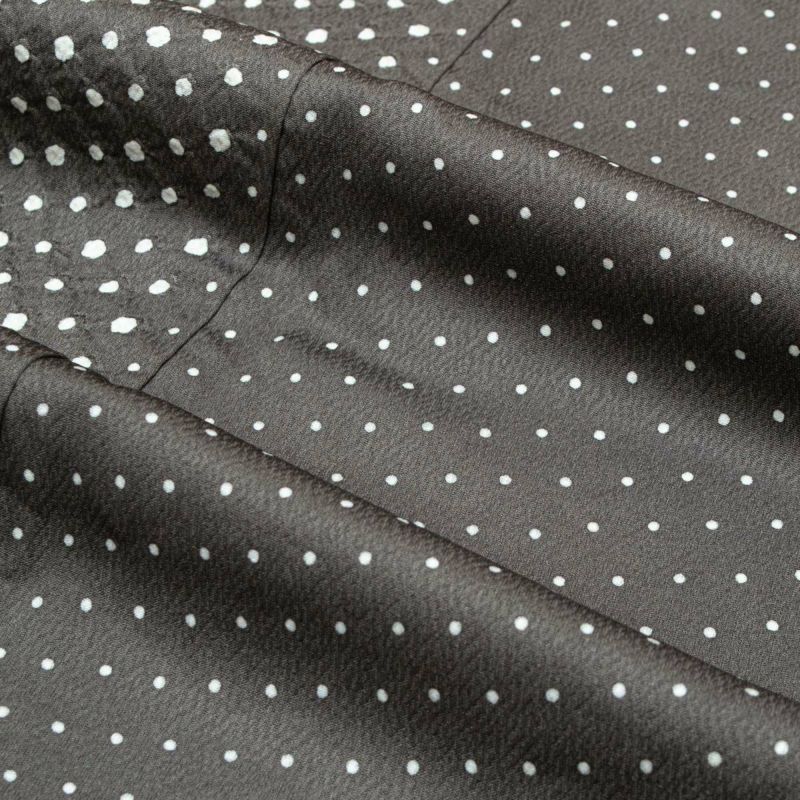 柔らかな縮緬地がドット柄の印象を程よく和らげ、個性的でありながらも主張しすぎないバランスが絶妙。都会的で洗練された雰囲気をまとい、コーディネート次第でカジュアルからセミフォーマルまで幅広く活躍してくれる一枚です。