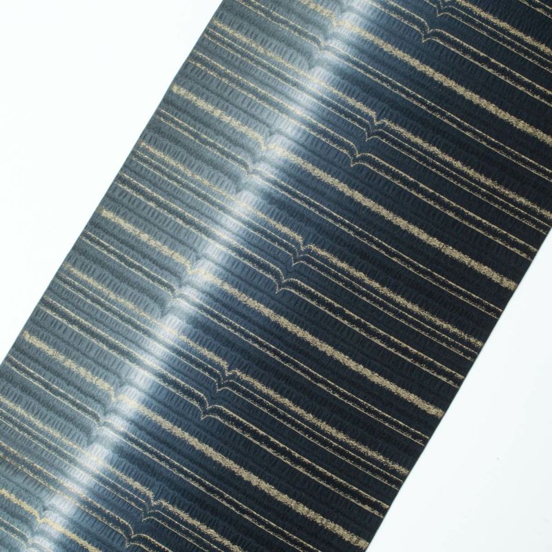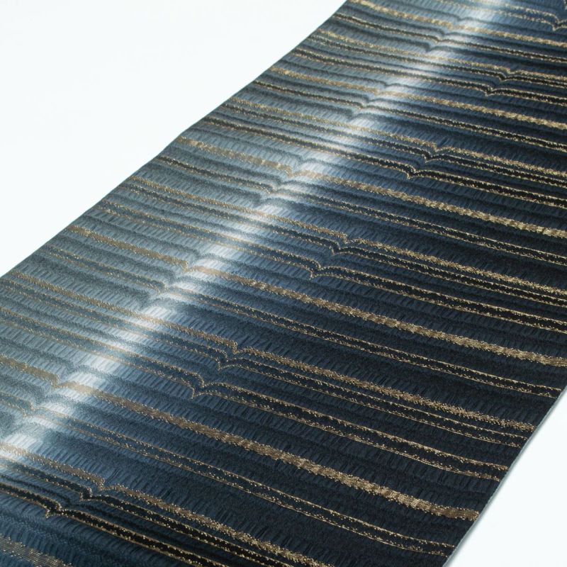 帯全体にリズミカルなパターンが織り出されており、見る角度によって変化する光沢が、動きに合わせて静かな表情を見せてくれます。