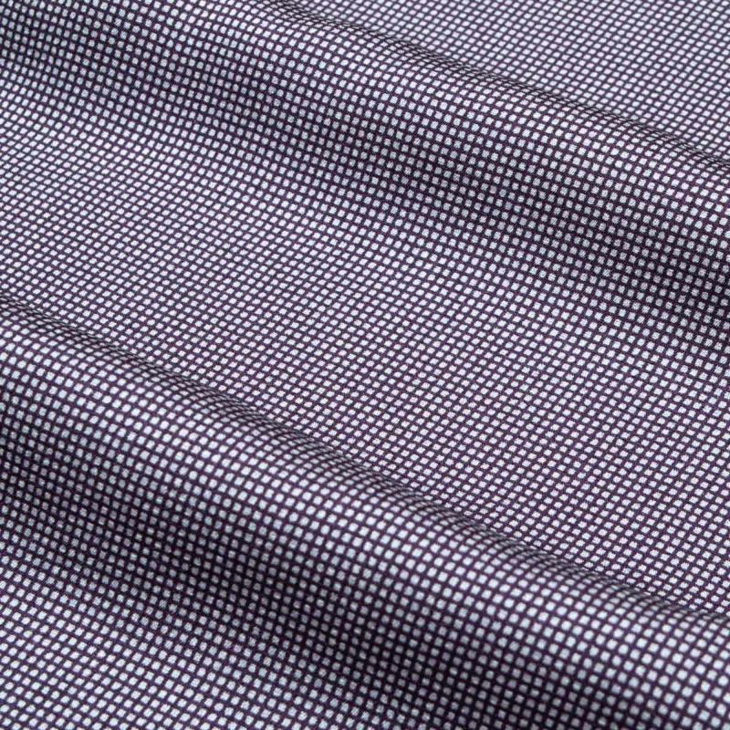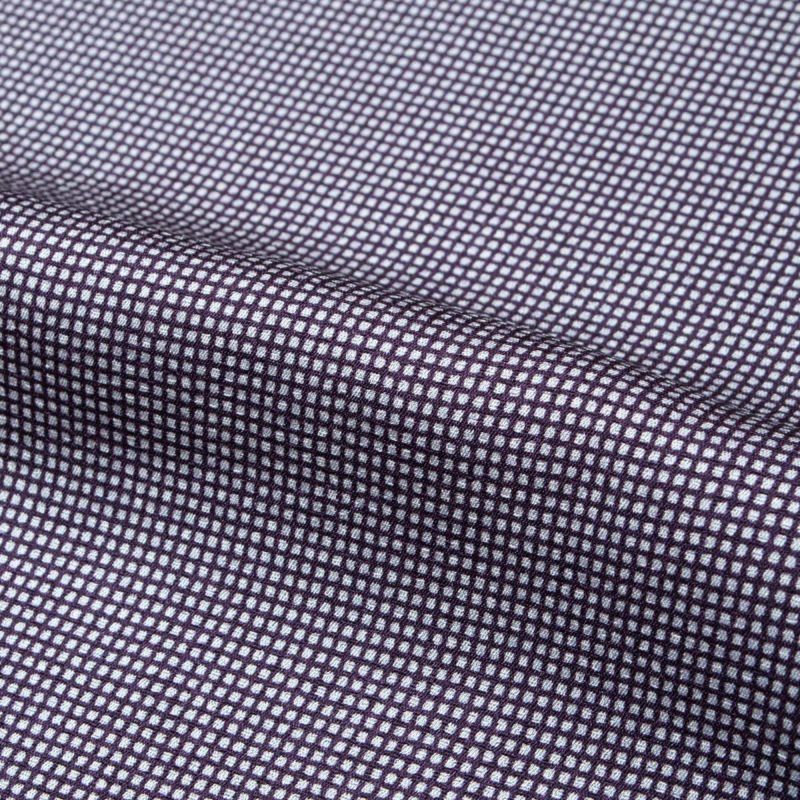 落ち着きのある紫色の地に、端正な角通し文様が染め出された、シルックの江戸小紋です。