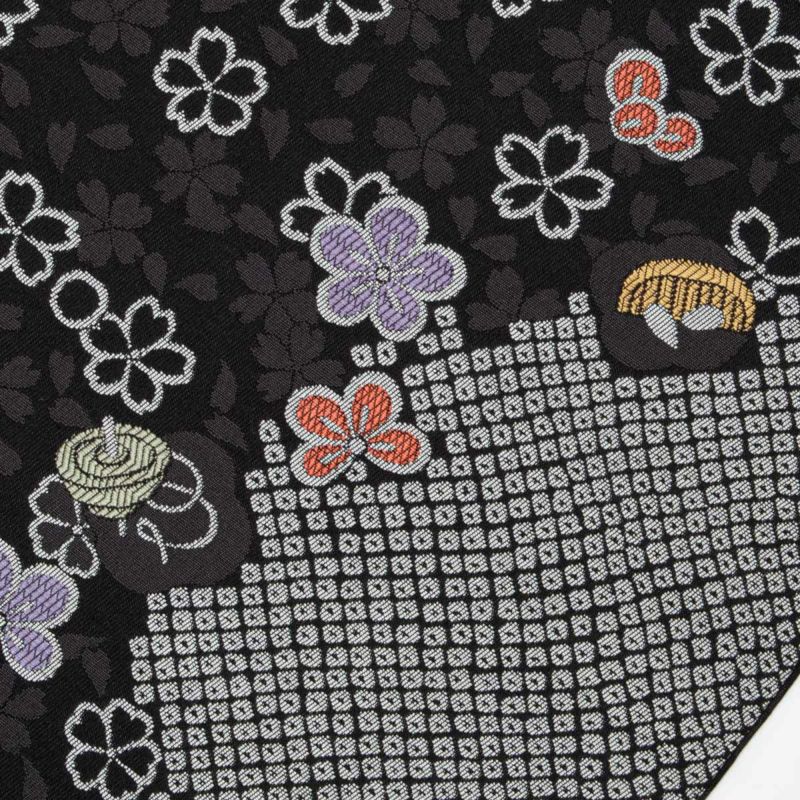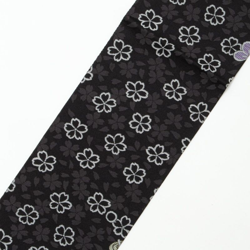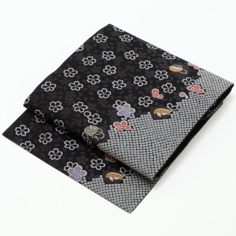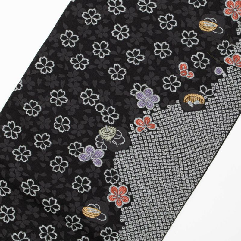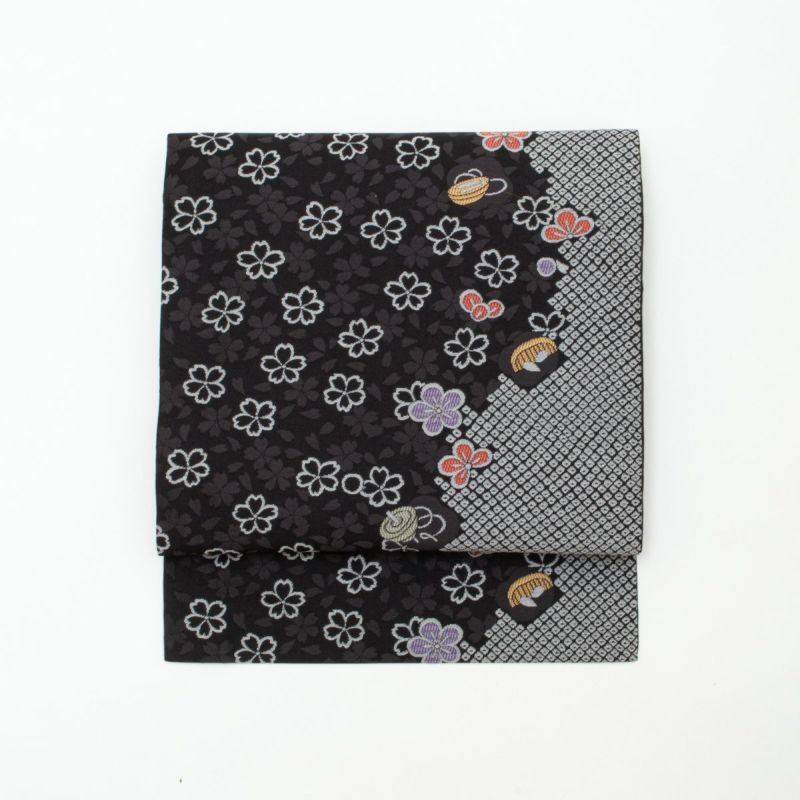 黒地に桜を散らした、華やかで愛らしい西陣織の名古屋帯です。
