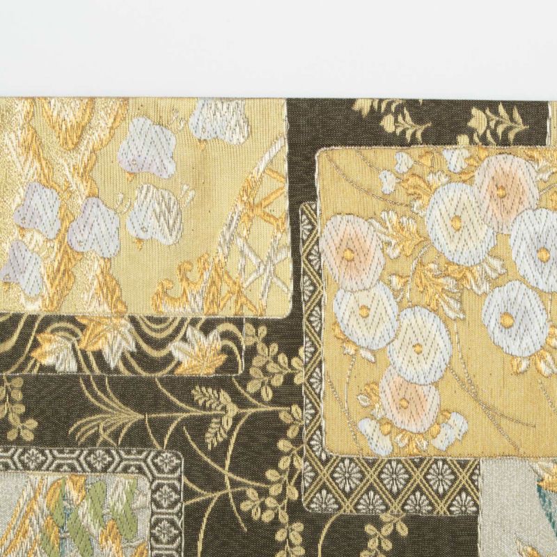 【美品】袋帯 唐織 浜千鳥 富士 波文 四季花文 黒 白 金糸織 西陣織 正絹 礼装用です。