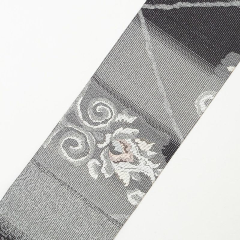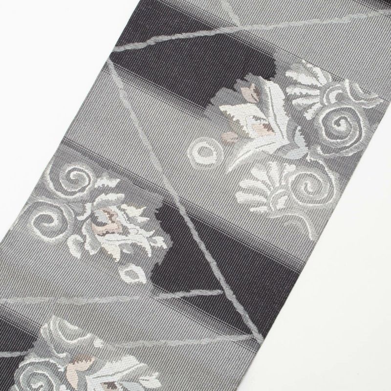 【美品】名古屋帯 唐花紋 モダン モノトーン 西陣織 正絹 九寸です。