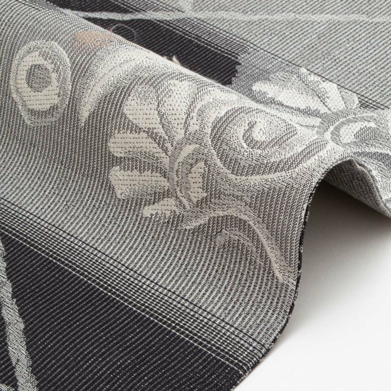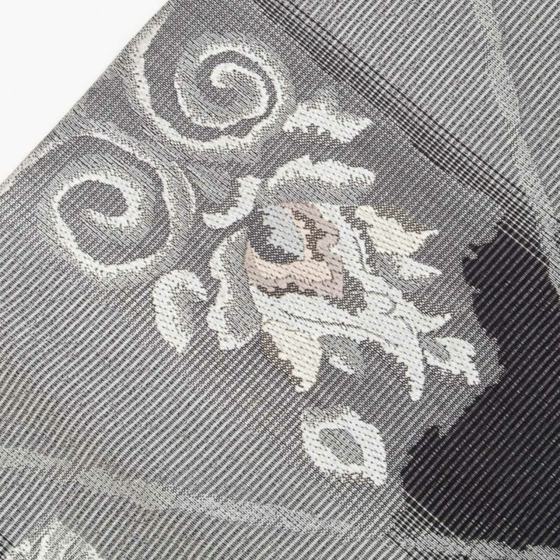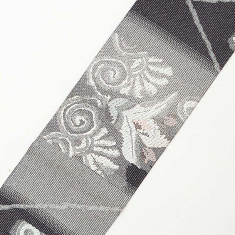 シックなモノトーンを基調とした、大胆な構成の唐花文様が織り出された一本。