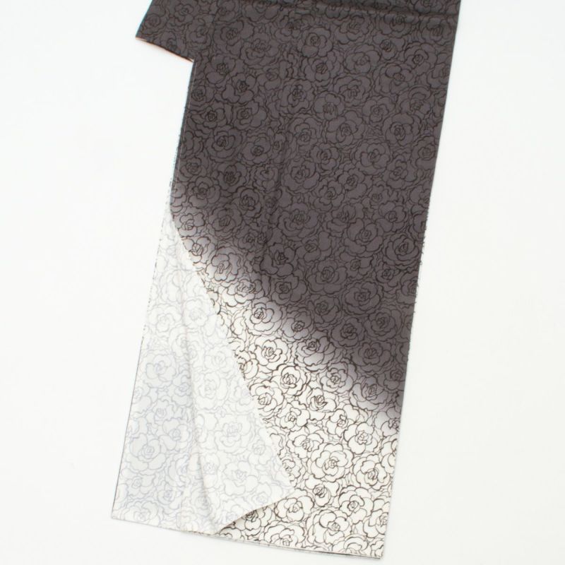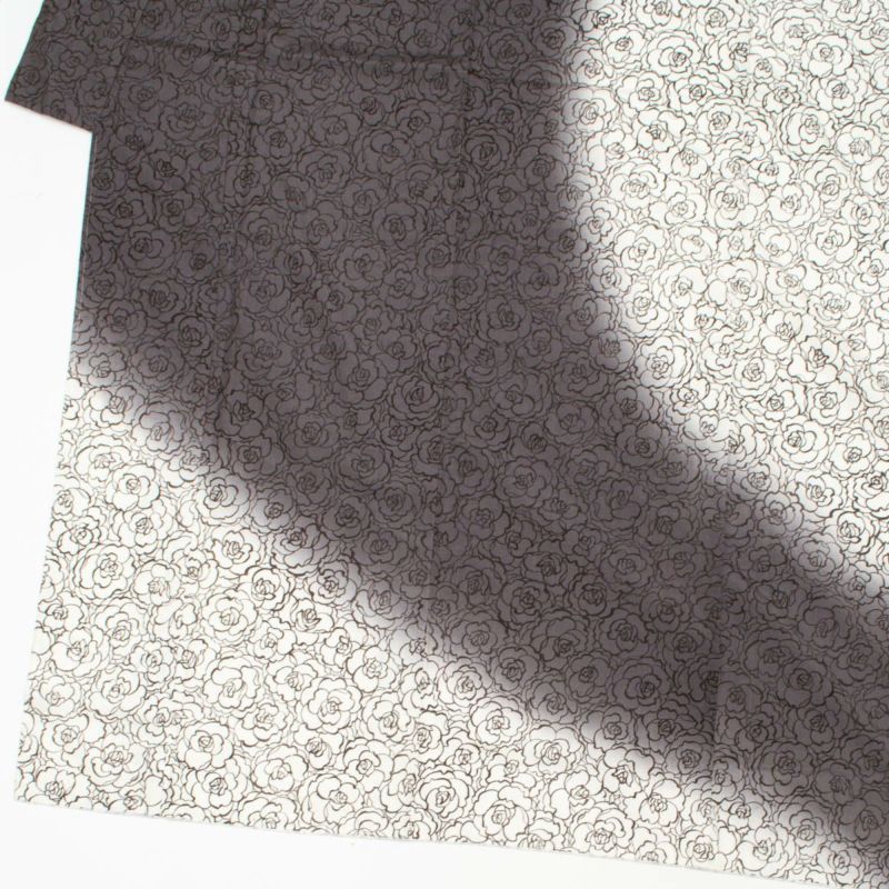 花の輪郭を繊細な線で描いた総柄の薔薇文様が、モダンな中にも気品を感じさせるデザイン。