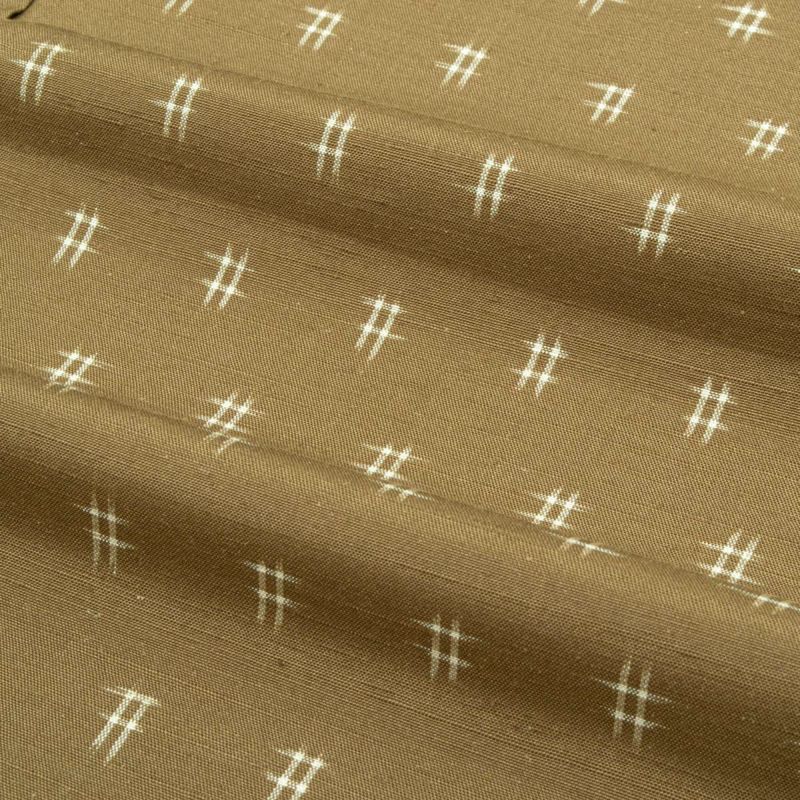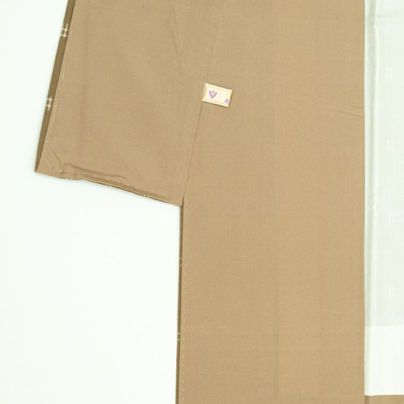 落ち着いた黄枯茶色を地色に、素朴な井桁絣があしらわれた紬のお品です。