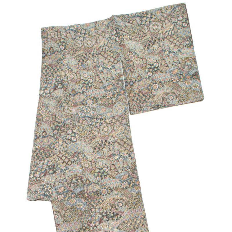 落ち着いた深みのある地色に、赤系・青系・緑系などの柔らかな色彩が映え、年代を問わずお召しいただける上品な佇まいです。