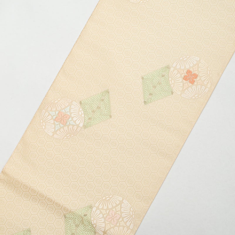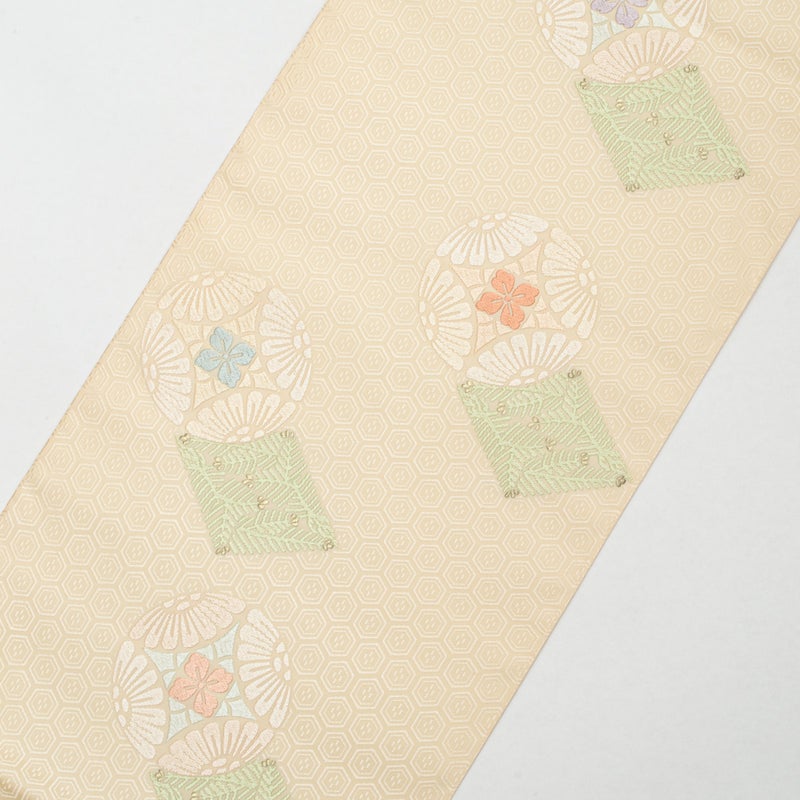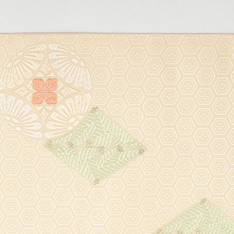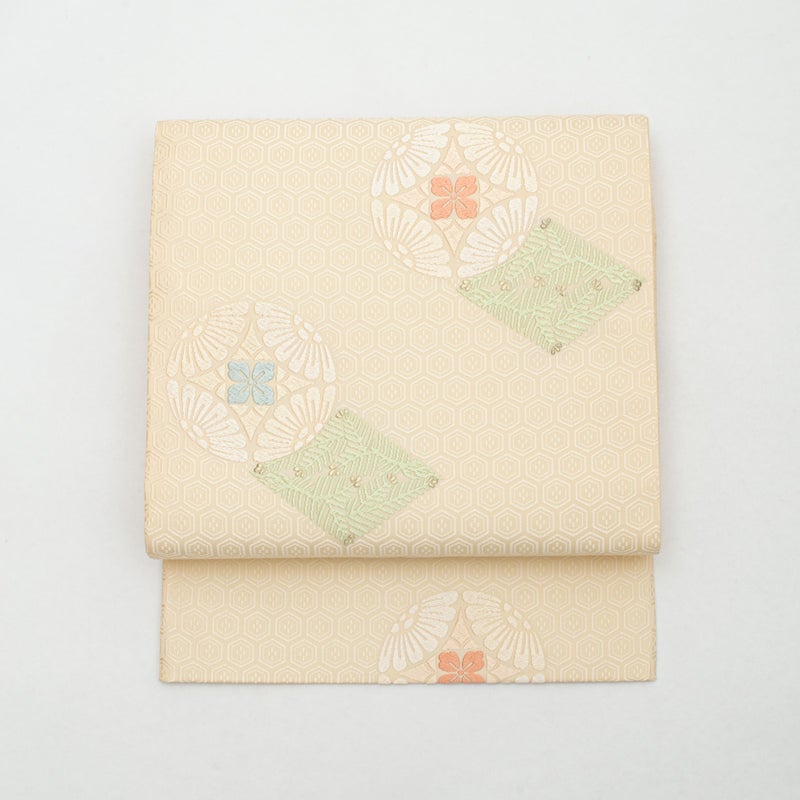 袋帯 唐織 七宝丸文 松葉菱 クリーム 西陣織 正絹 礼装用