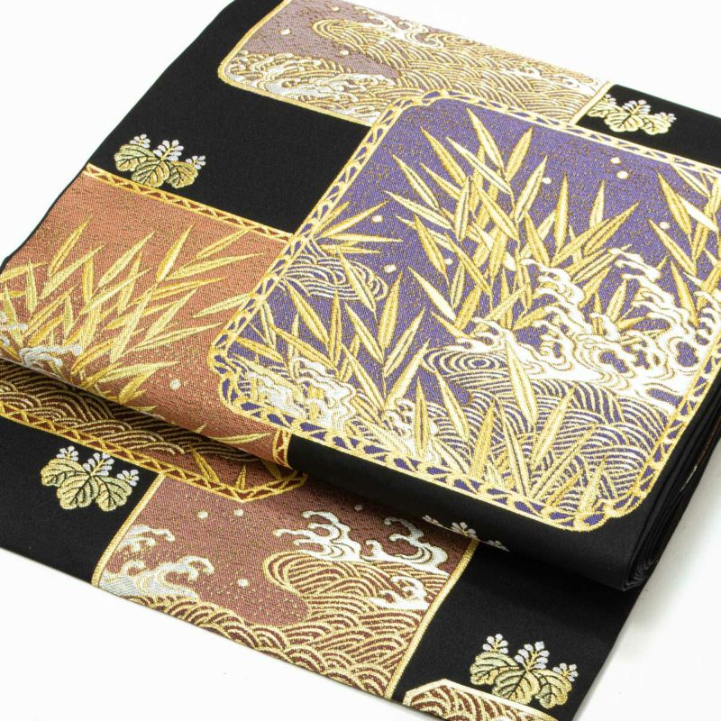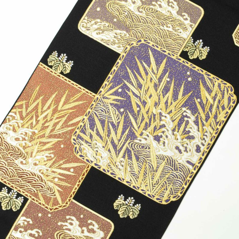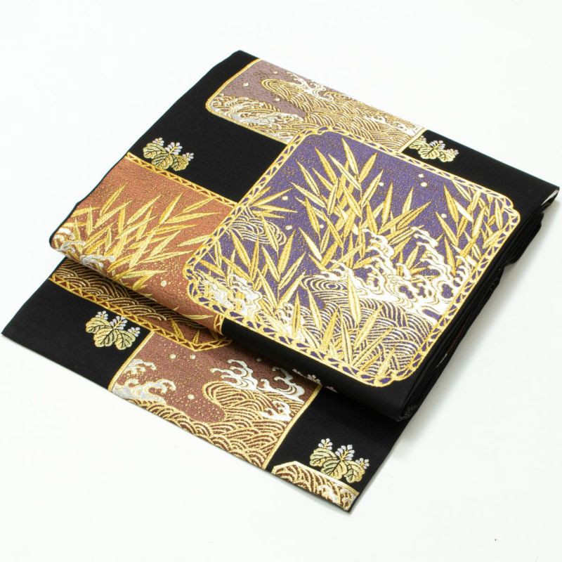 【川島織物】袋帯 波文 青海波 植物文 黒 金彩 西陣織 正絹 礼装用です。