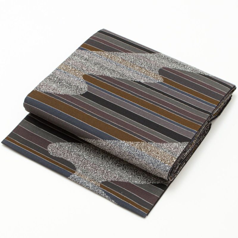 ややハリのある地風で締めやすく、帯姿も美しく決まる一本。シンプルながら奥行きのある意匠が、お召しや紬、小紋などの装いを格上げしてくれる洒落帯です。