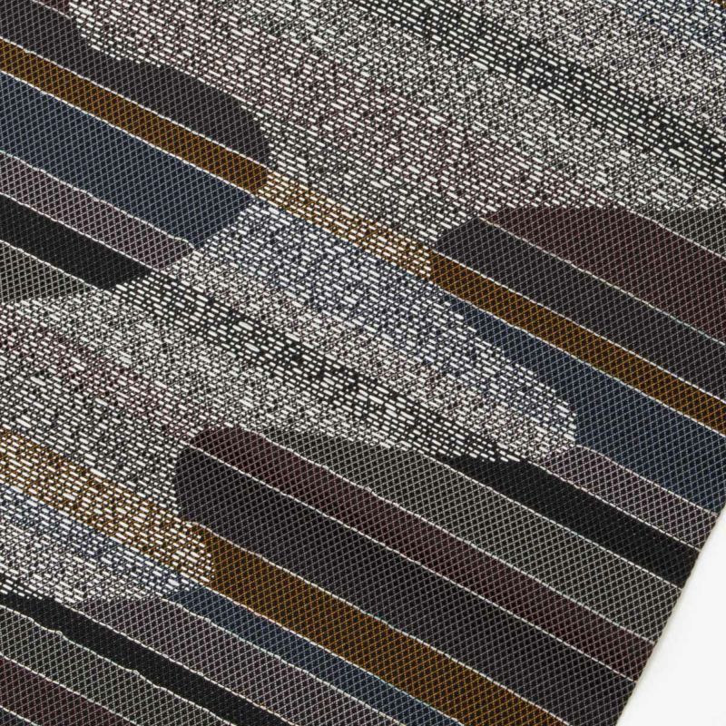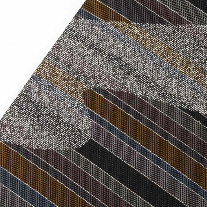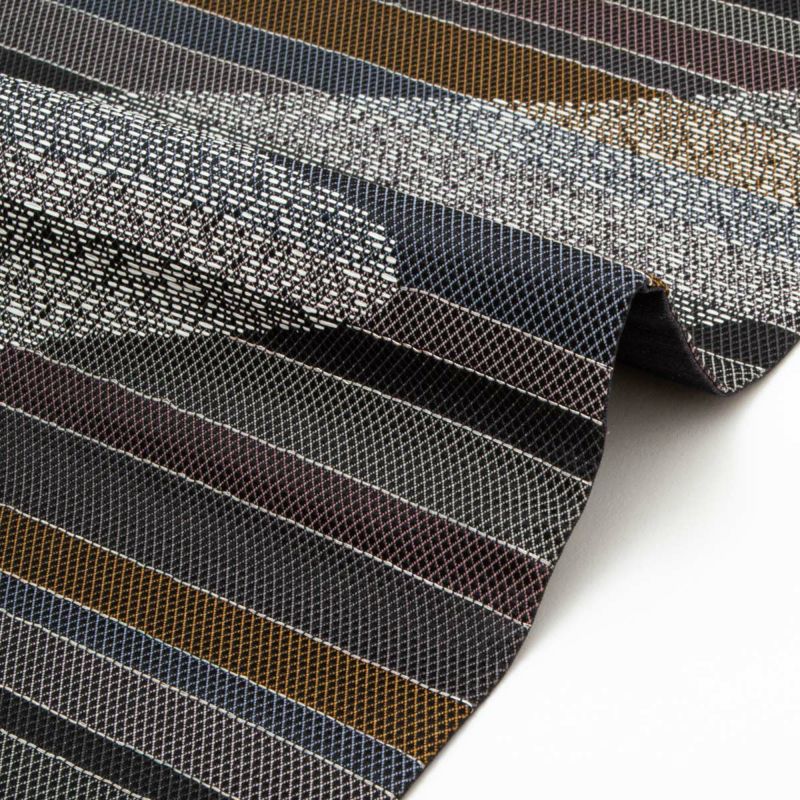 深い墨黒を基調に、茶、焦茶、青味がかったグレー、紫がかった赤茶など、複数のニュアンスカラーがボーダー状に配され、洗練された雰囲気を醸します。