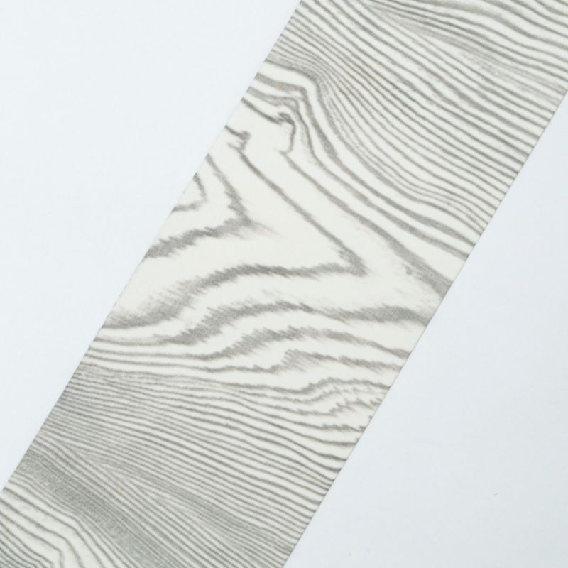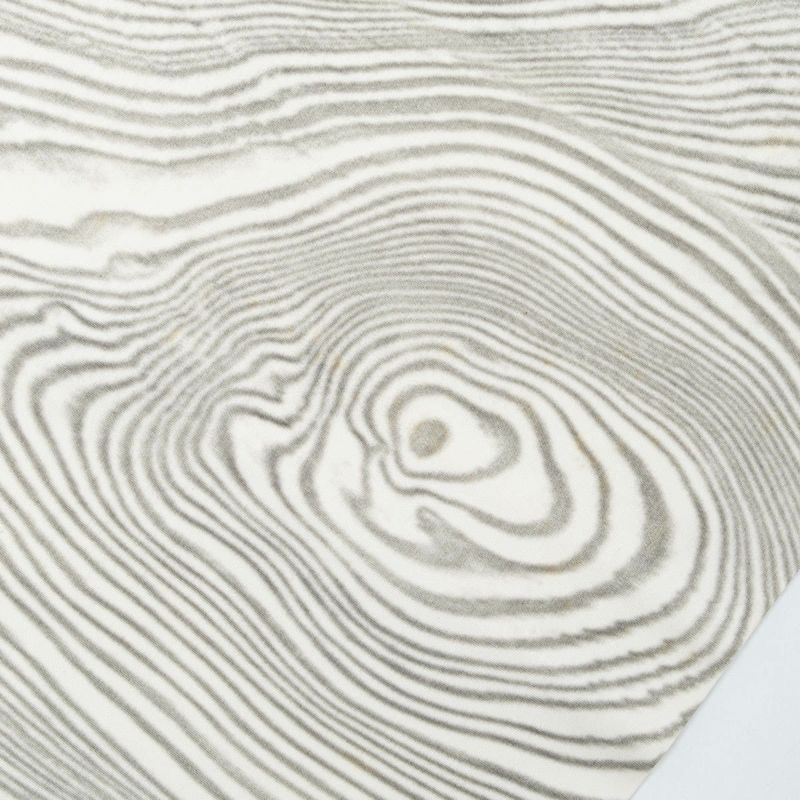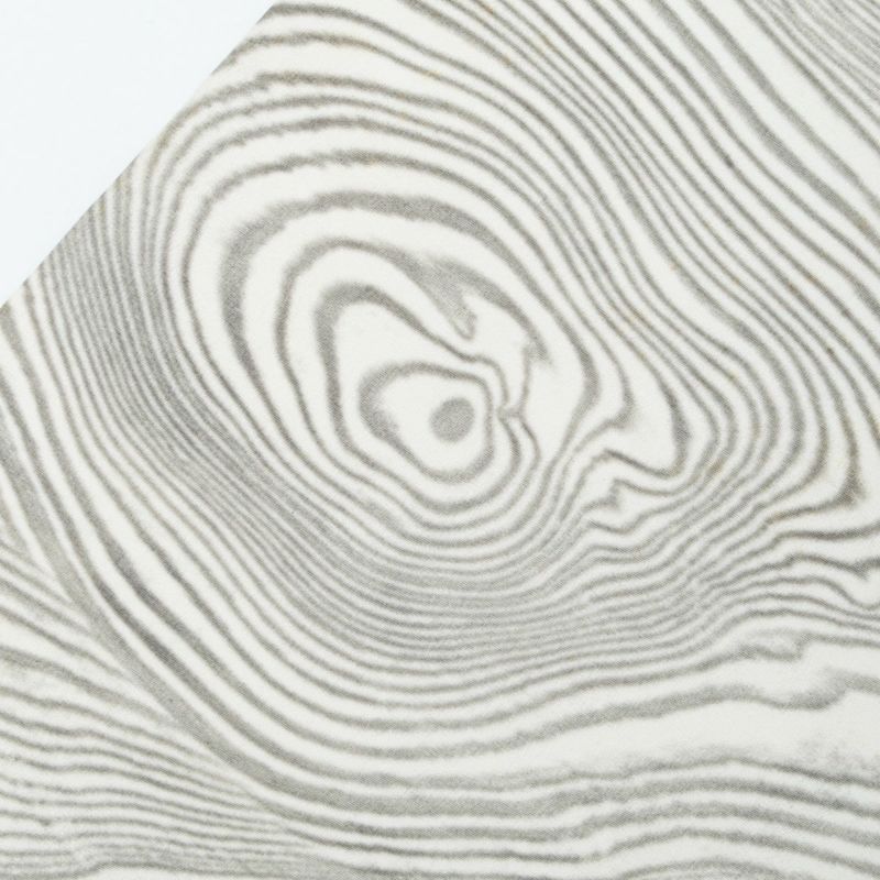 白地に淡いグレーの濃淡で表現された木目文様は、静謐でモダンな雰囲気を醸し出します。