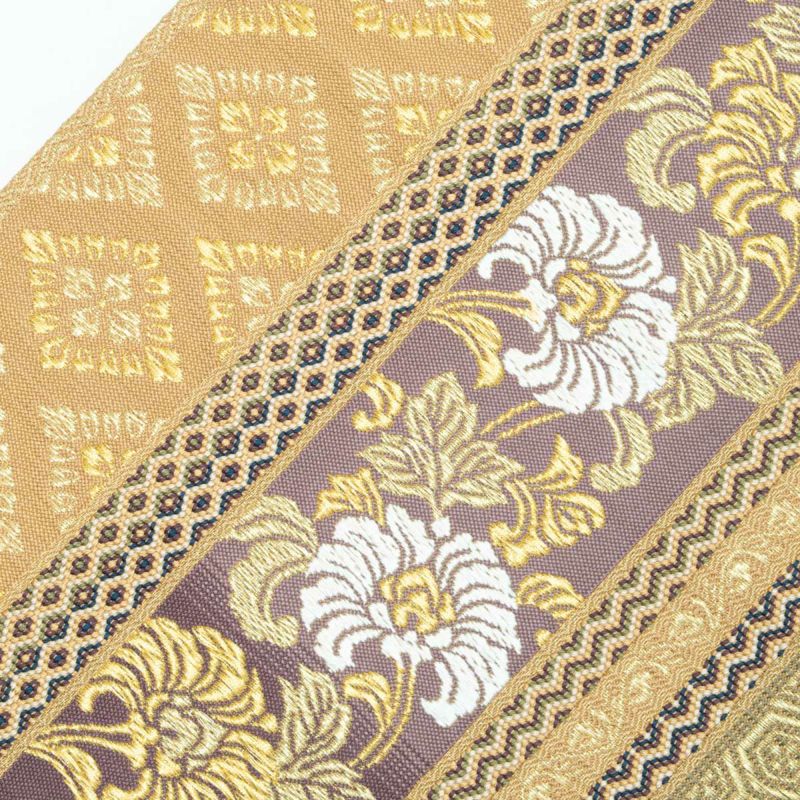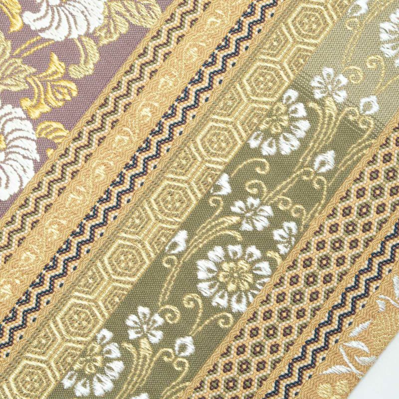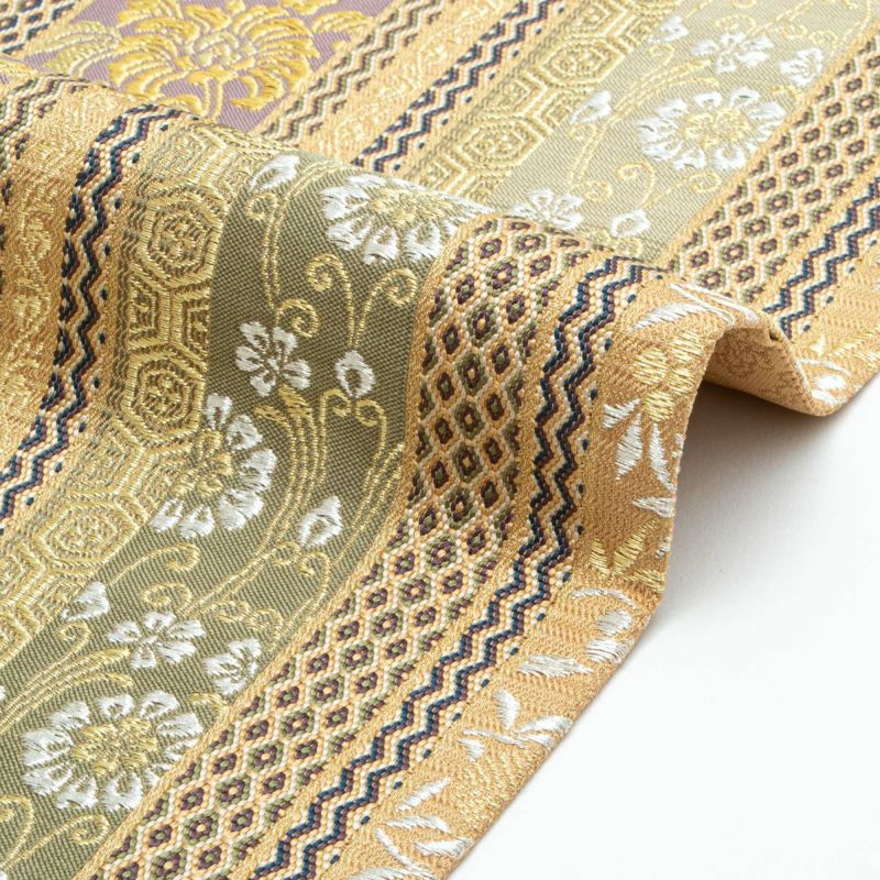 多彩な文様が縞状に構成されており、表情豊かで視線を惹きつける意匠。織りの密度も美しく、上質な組織による確かな仕立てがうかがえます。