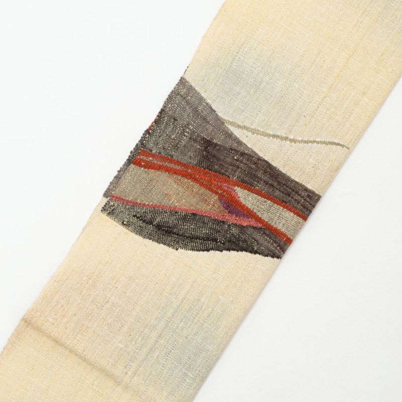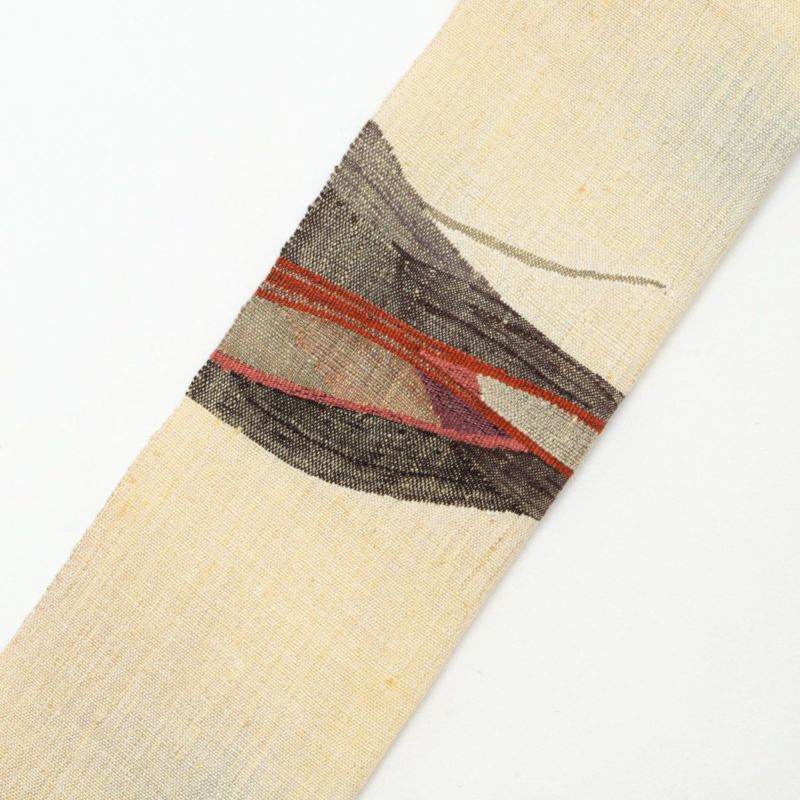 開き名古屋帯 真綿織 紬 手織り 抽象柄 渡文調 西陣織 正絹 八寸 です。