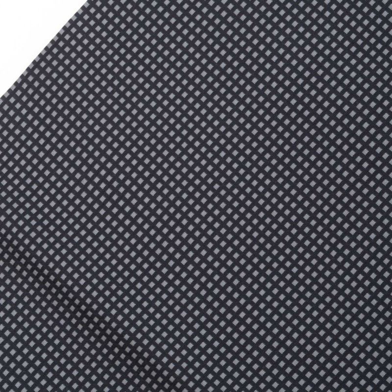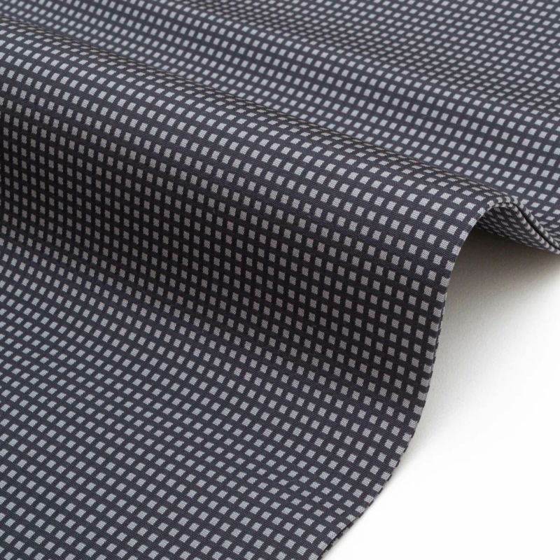 黒地に灰青の小さな市松が規則正しく並び、すっきりとした都会的な雰囲気を演出します。