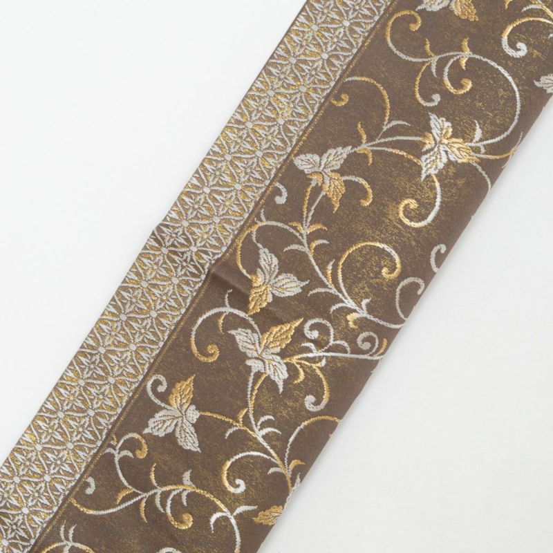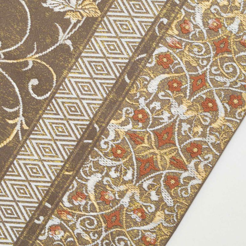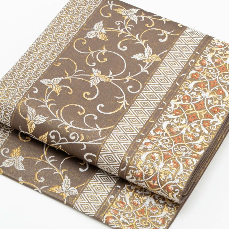 金糸や白糸が映える繊細な織りが、落ち着いた色調の中にも華やぎを添えています。