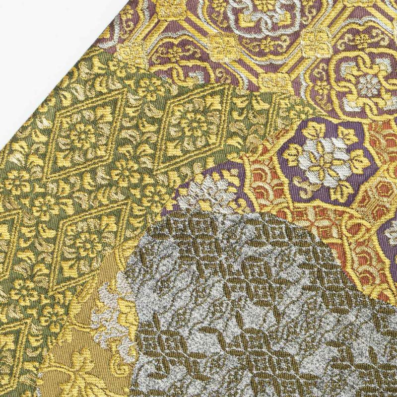 華やかな唐花紋や花唐草、名物裂文様を贅沢に織り上げた、美しい袋帯です。