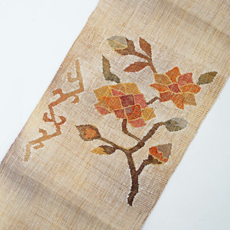 柔らかな風合いが魅力の真綿糸を用い、手織りで丁寧に仕上げられた開き名古屋帯です。