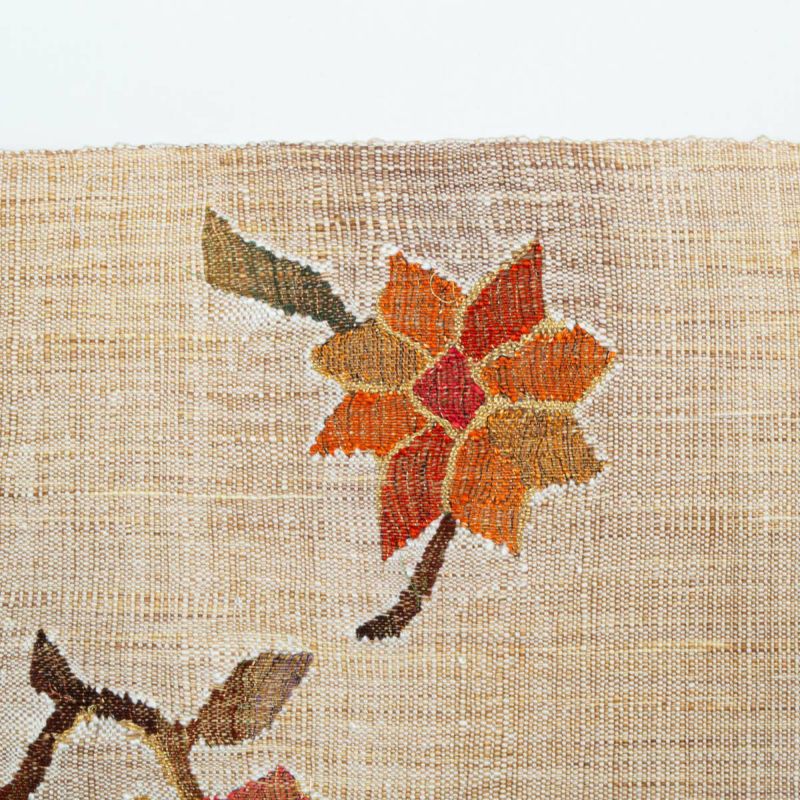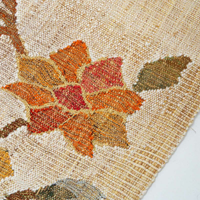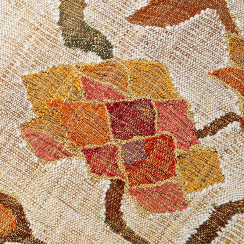 花や葉のモチーフは織りによって立体的に表現され、素朴さと洗練を併せ持つデザインが魅力です。