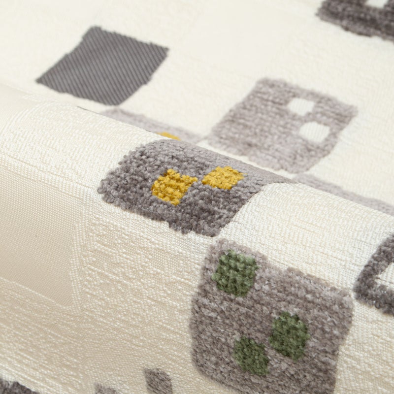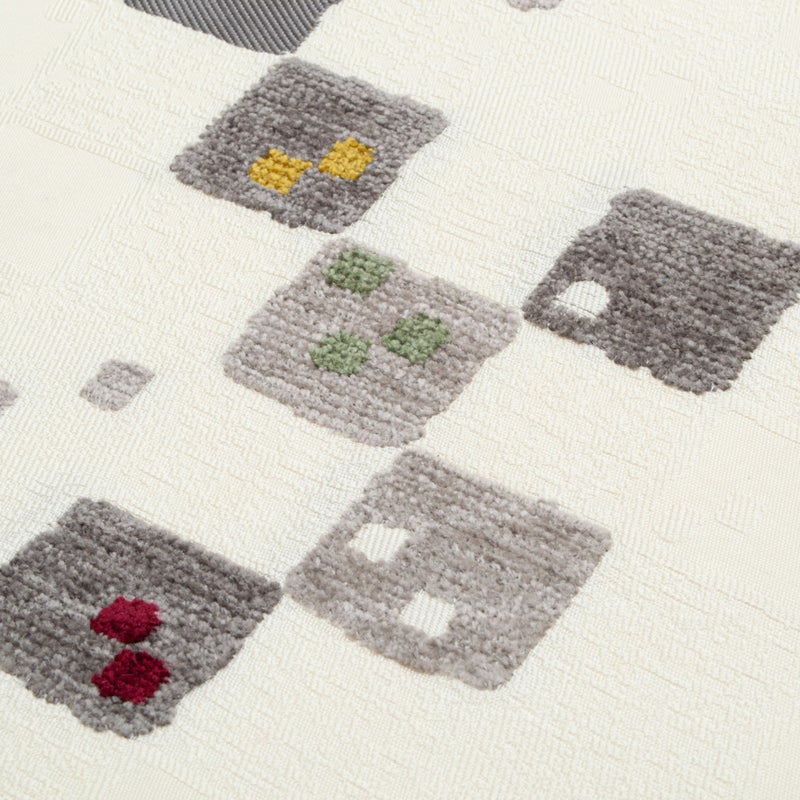 グレーを基調に、さりげなく差し色を添えた変わり市松の構成が、愛らしさとモダンな印象を両立させています。