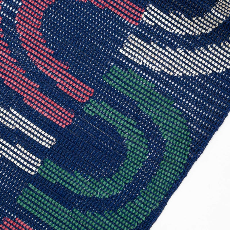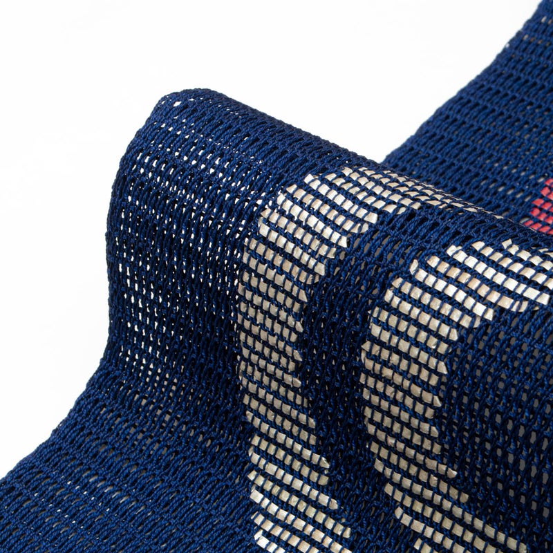 透け感のある織りに、段ずらしのリズムで描かれた有機的なラインが映え、モダンで軽やかな印象に仕上がっています。