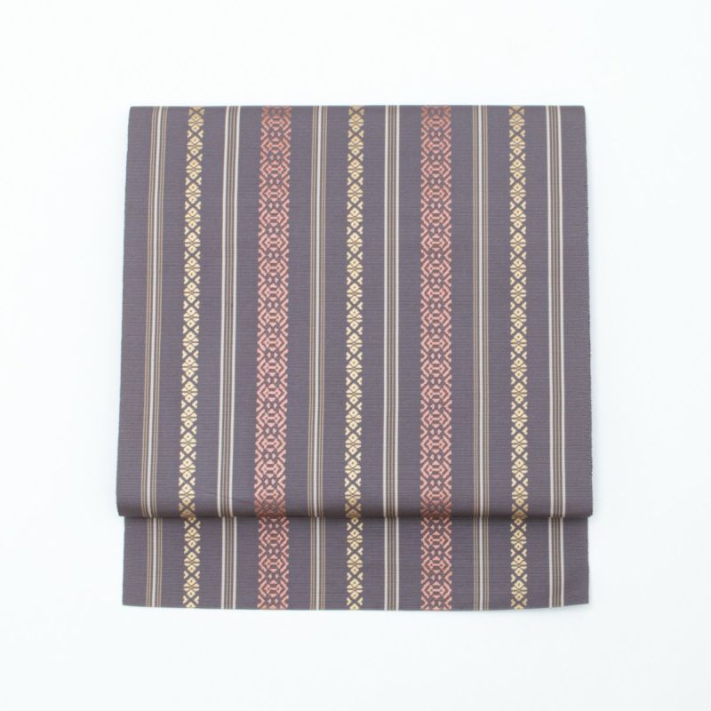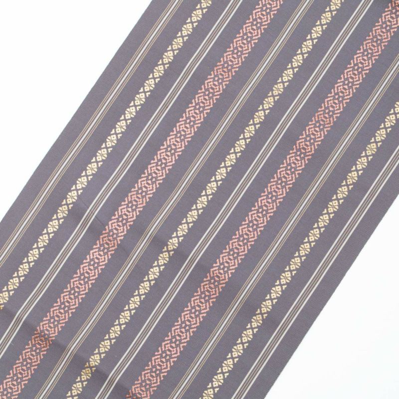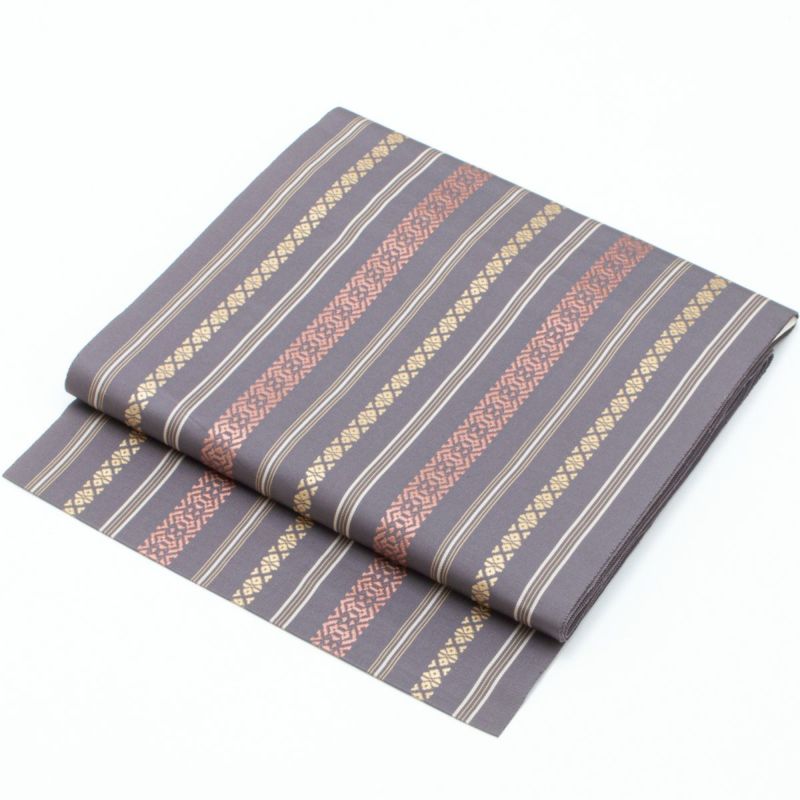 【美品】名古屋帯 本場筑前 博多織 献上柄 五献 源氏鼠 正絹 八寸です。