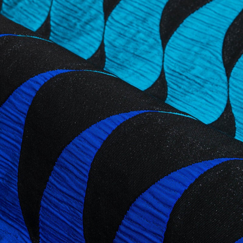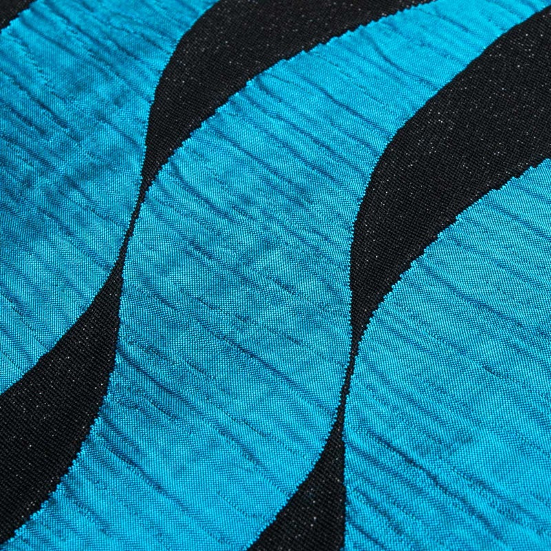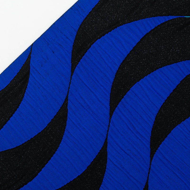 波のように繰り返す曲線は、ふくれ織による立体感のある表情で表され、部分によって織りの凹凸がはっきりと感じられます。