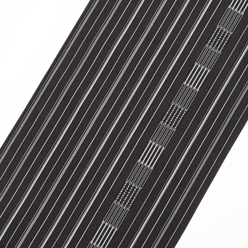地は細かな凹凸のある織りで、落ち着いた質感の中に遊び心のある図柄が映える西陣織の帯です。