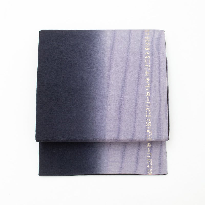 青紫の濃淡がやわらかく移ろう、上品なグラデーションが印象的な洒落袋帯です。