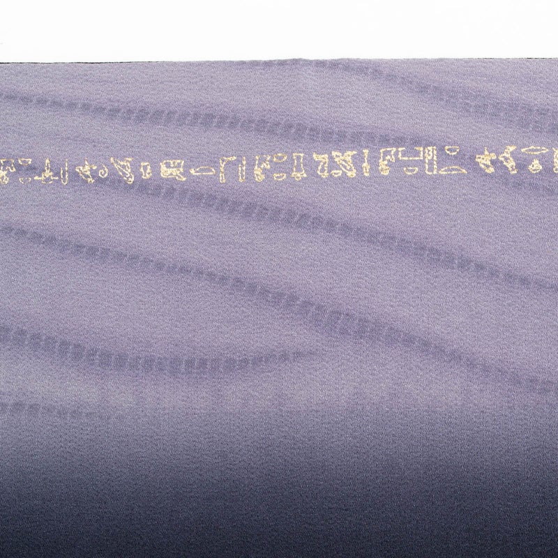 縮緬地ならではのしなやかな風合いに、さりげなく金彩で描かれたコプト柄のラインが、静かなアクセントを添えています。