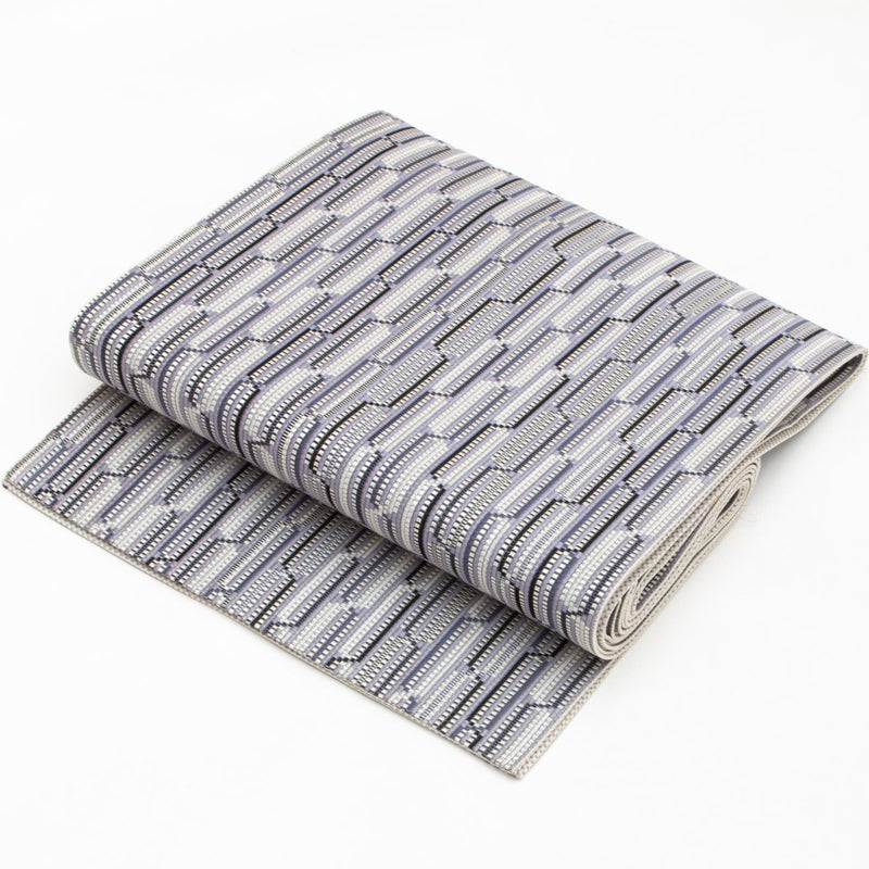 本場筑前博多織ならではのしっかりとした織りに、細やかな紋織で表現された連続模様が奥行きを生み、静かなリズム感を感じさせます。