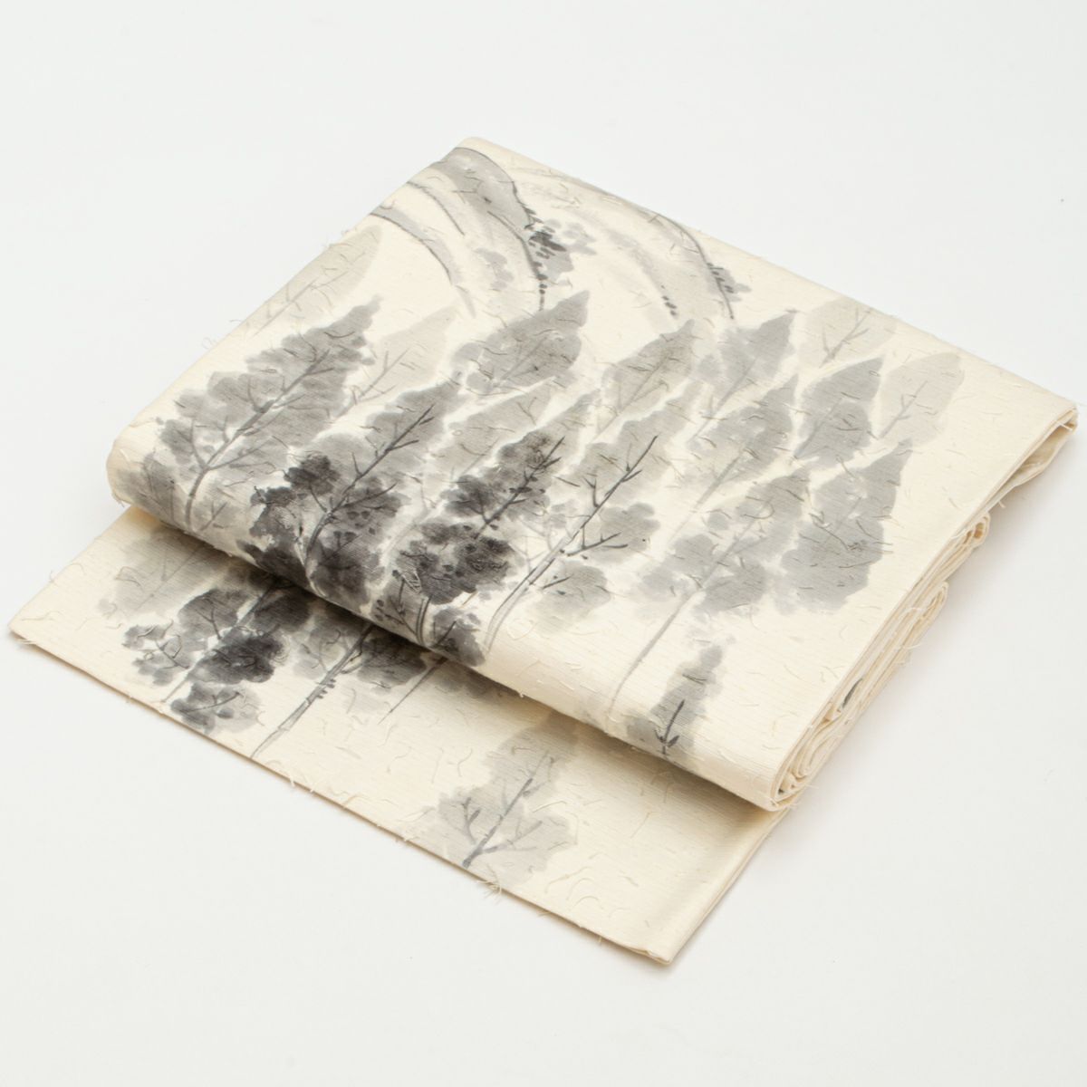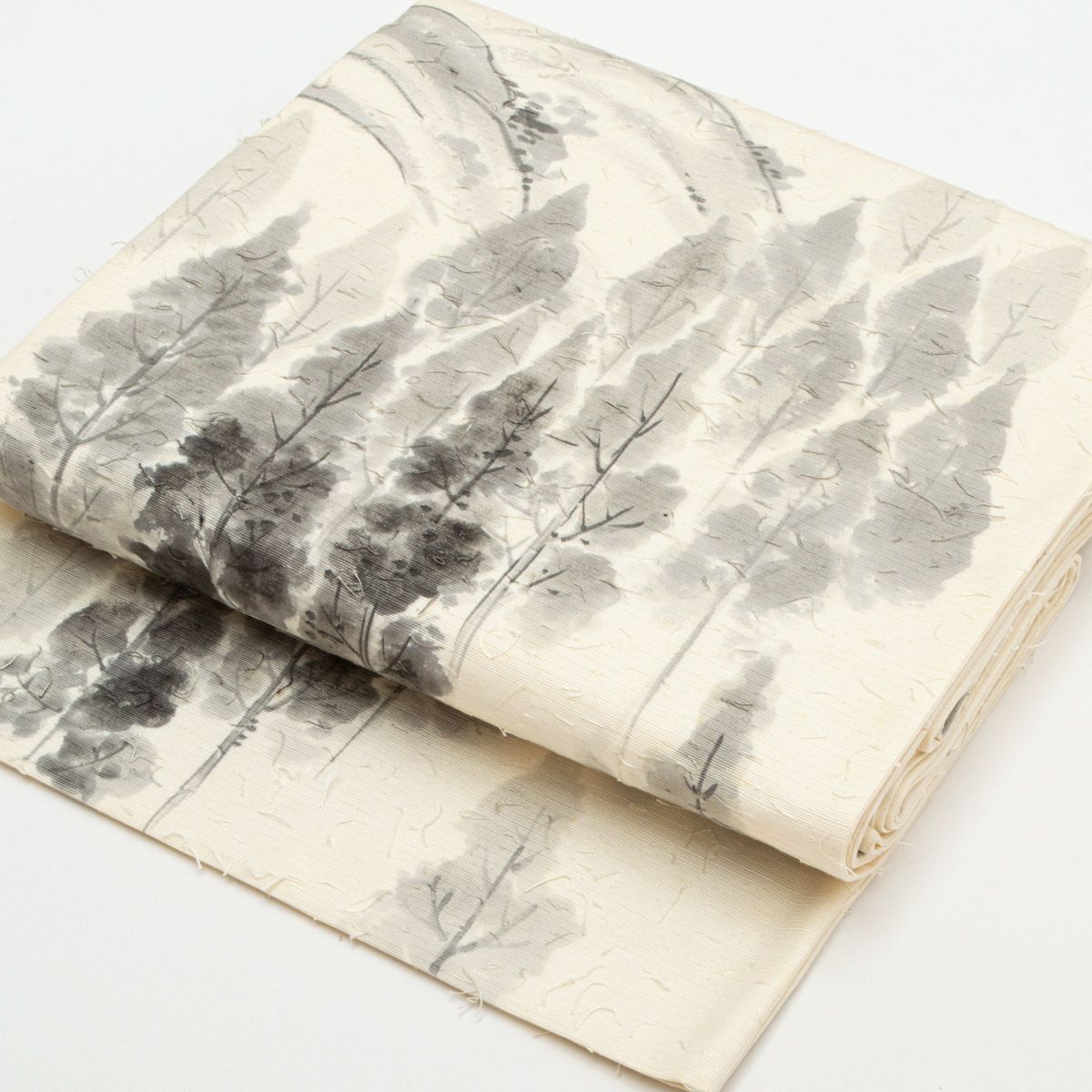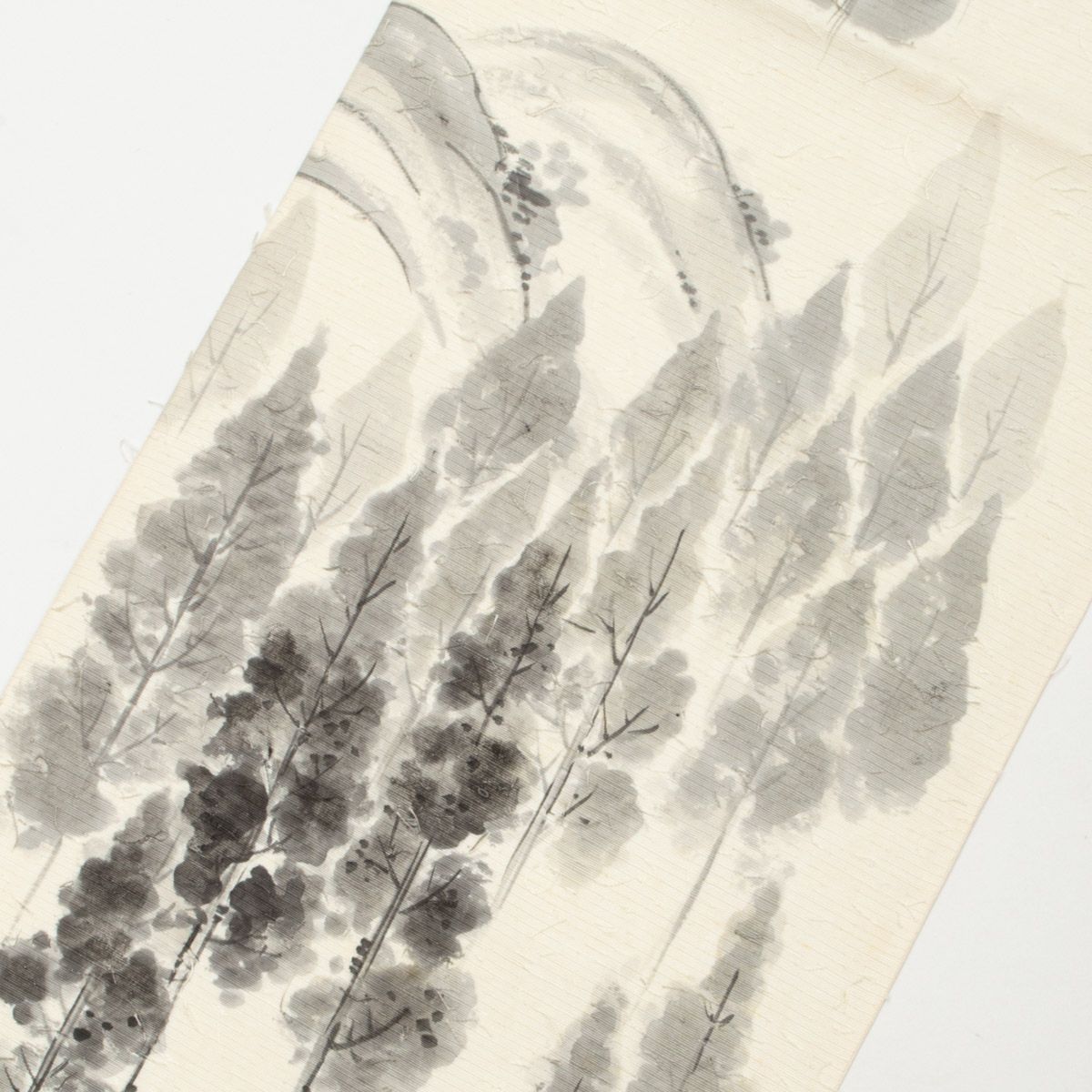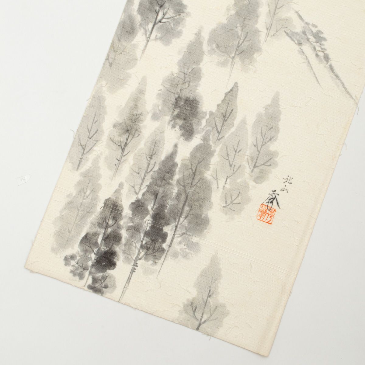 他の画像を見る 【美品】洒落袋帯 手描き 墨絵調 山並みと北山杉の図 ひげ紬 オフホワイト 作家物 落款有り 正絹 正絹 当店特別価格 ¥ 13,200 税込 SOLD OUT 詳細を見る お気に入りに登録する