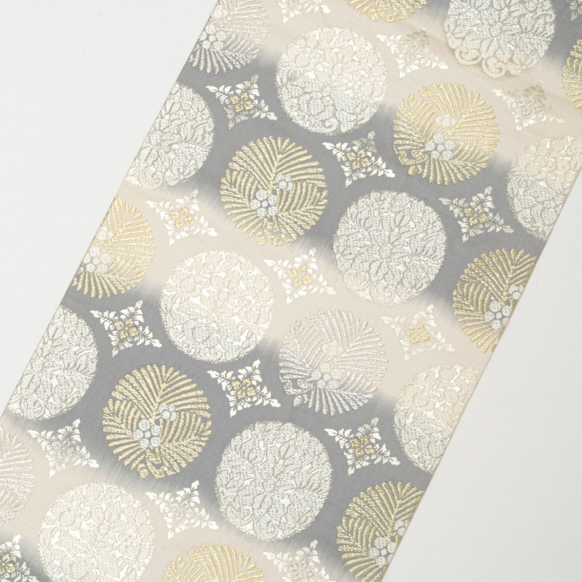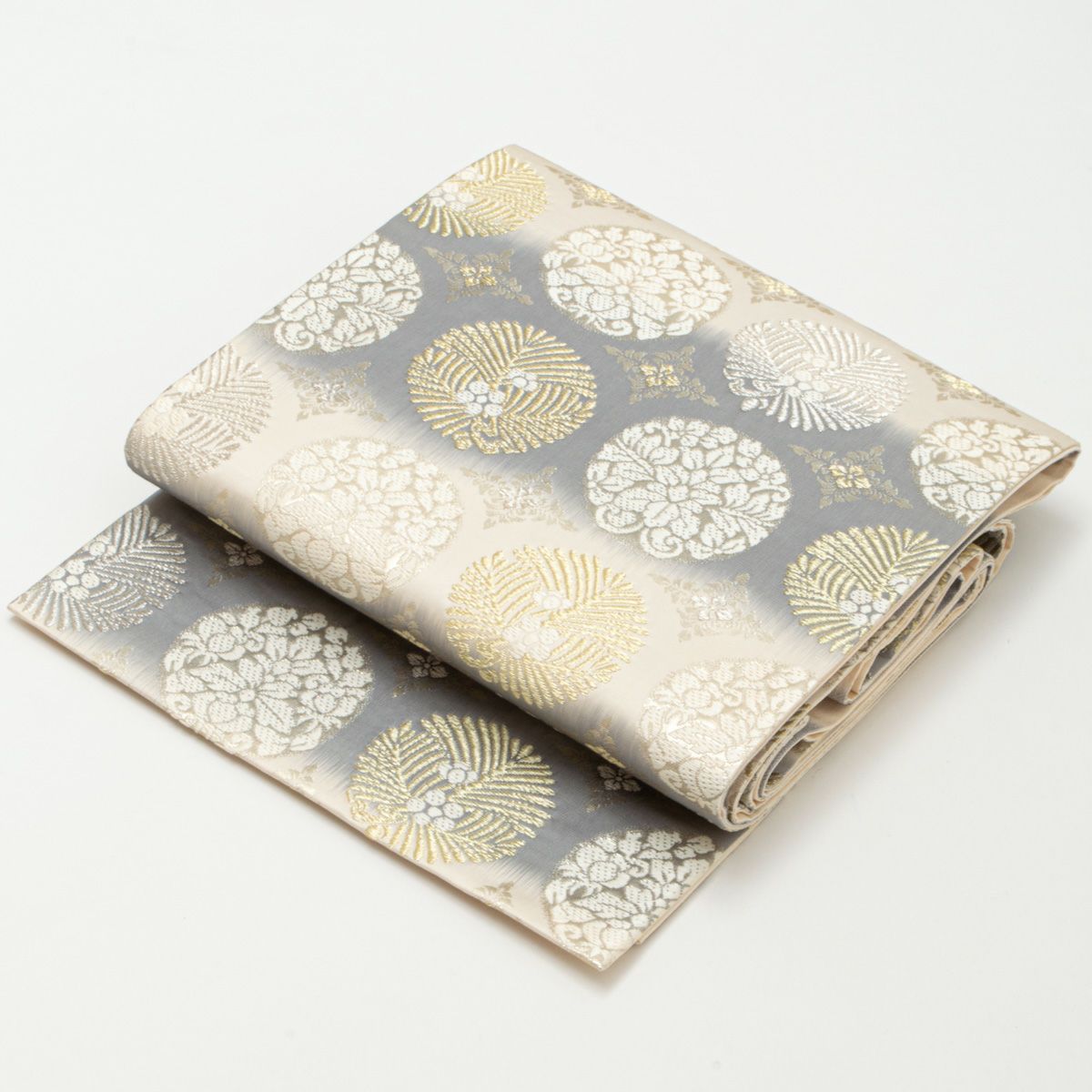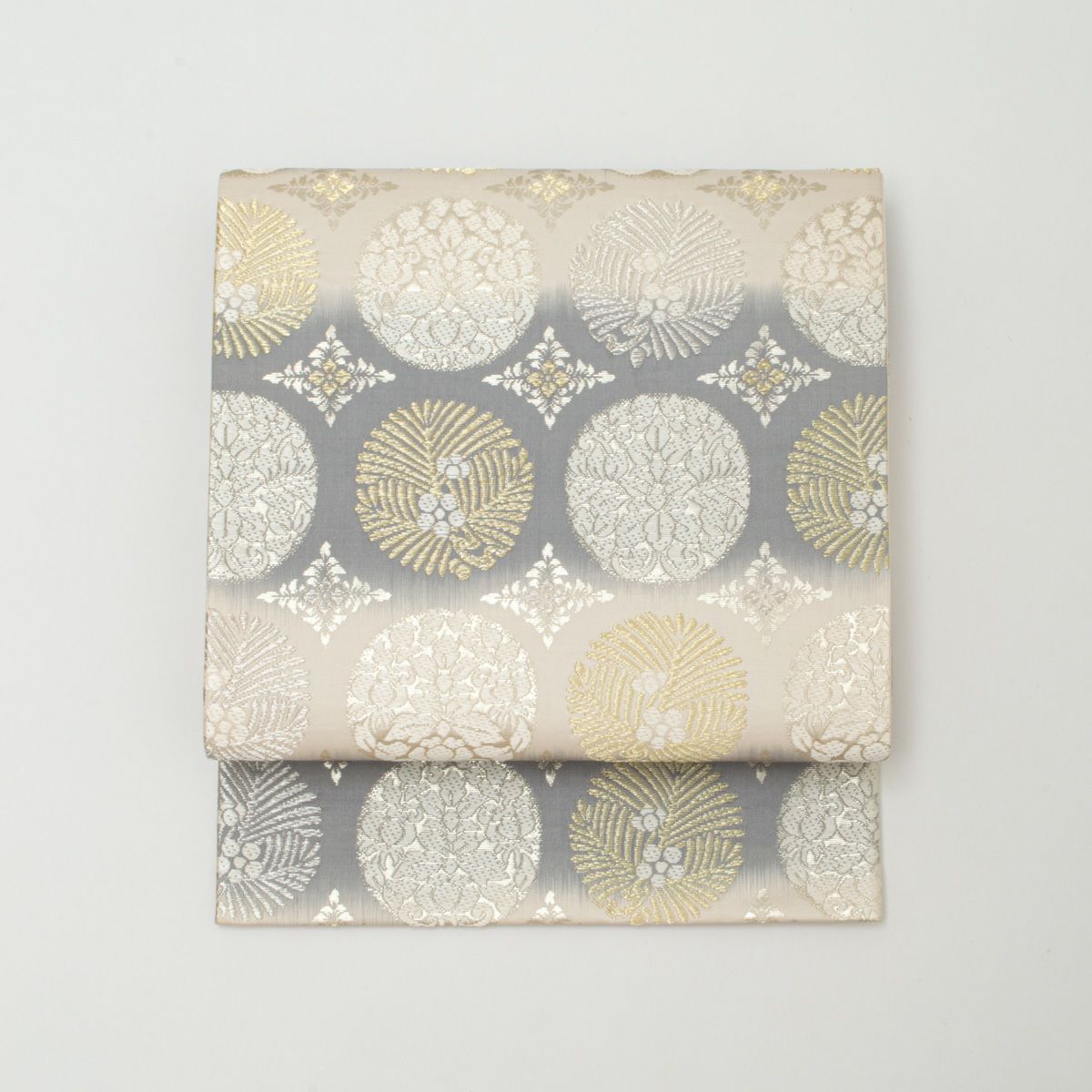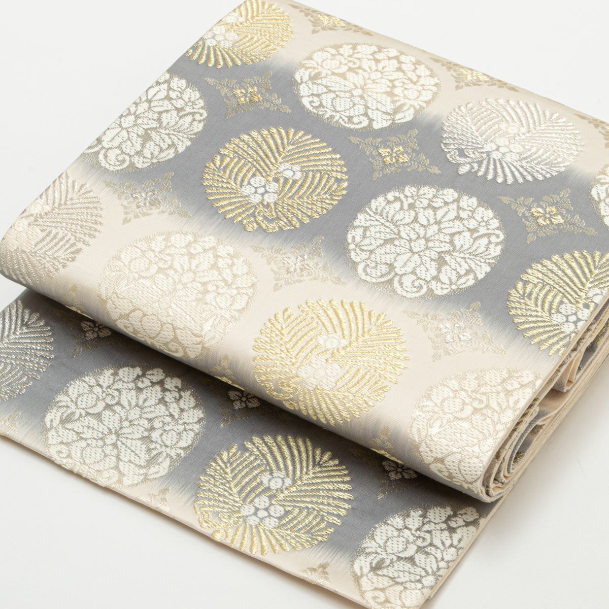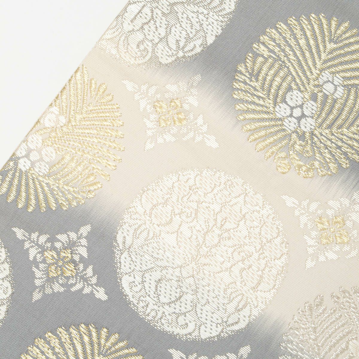 他の画像を見る 【前田眞織物】袋帯 唐織 草木染 金糸織 唐花丸紋 オフホワイト グレー 暈し横段 西陣織 正絹 礼装用 当店特別価格 ¥ 22,000 税込 SOLD OUT 詳細を見る お気に入りに登録する