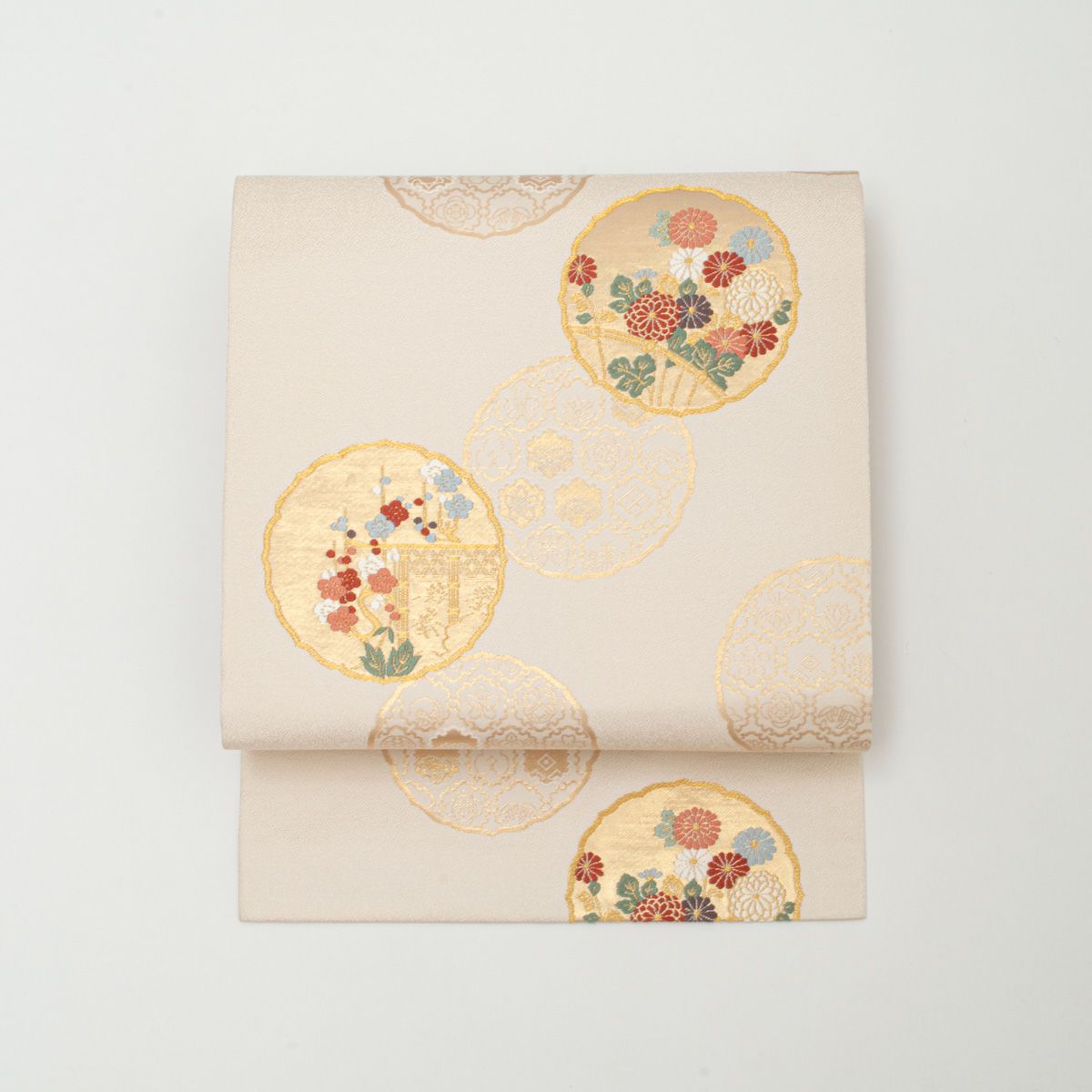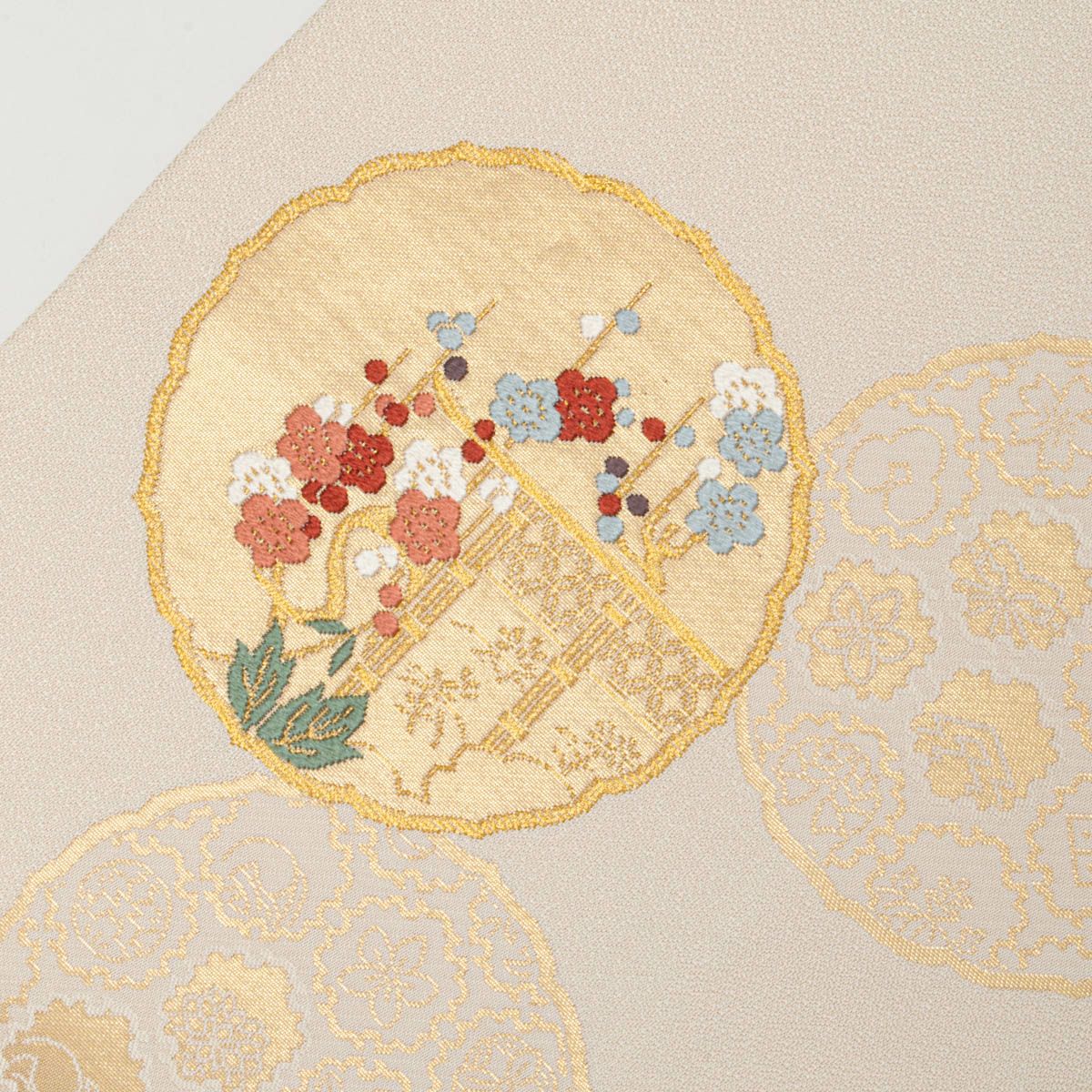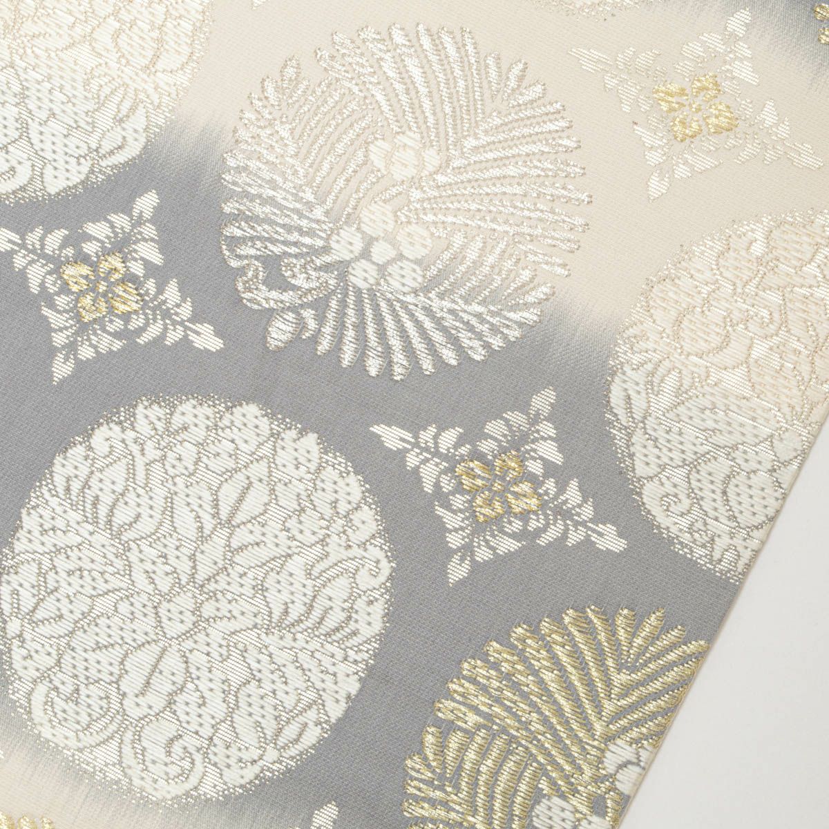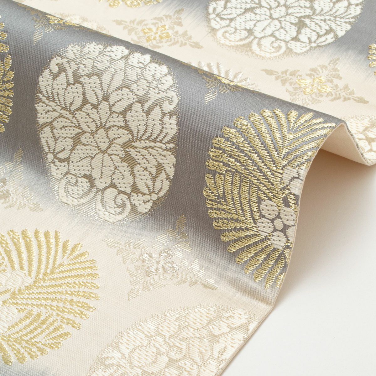 他の画像を見る 【前田眞織物】袋帯 唐織 草木染 金糸織 唐花丸紋 オフホワイト グレー 暈し横段 西陣織 正絹 礼装用 当店特別価格 ¥ 22,000 税込 SOLD OUT 詳細を見る お気に入りに登録する