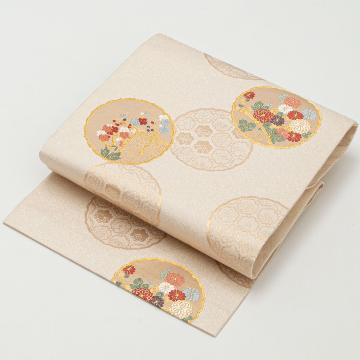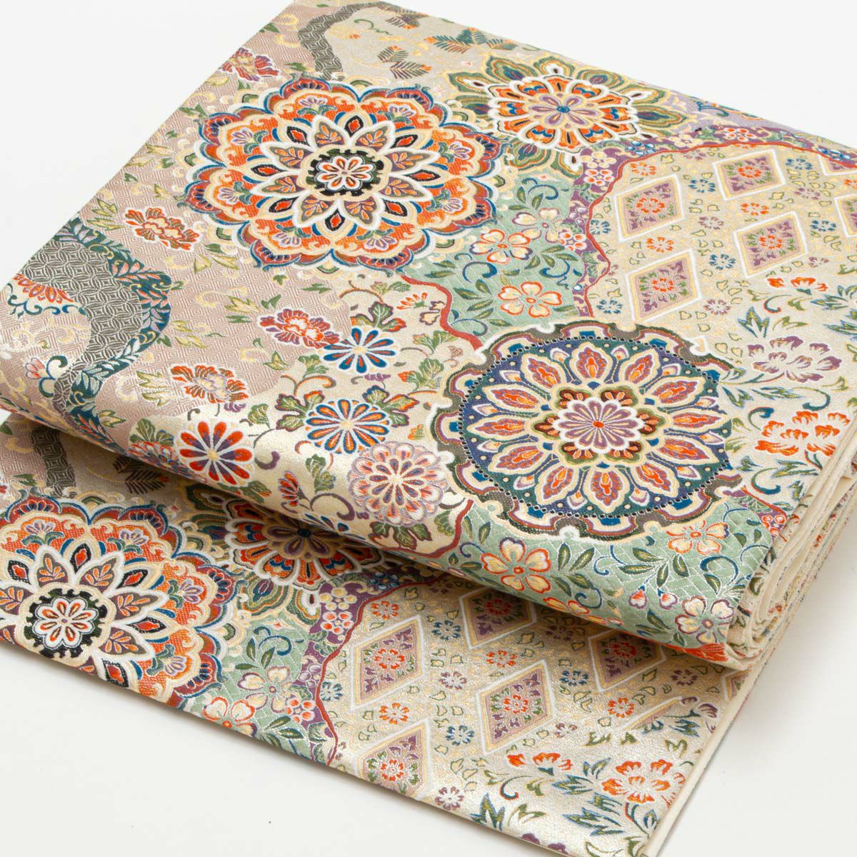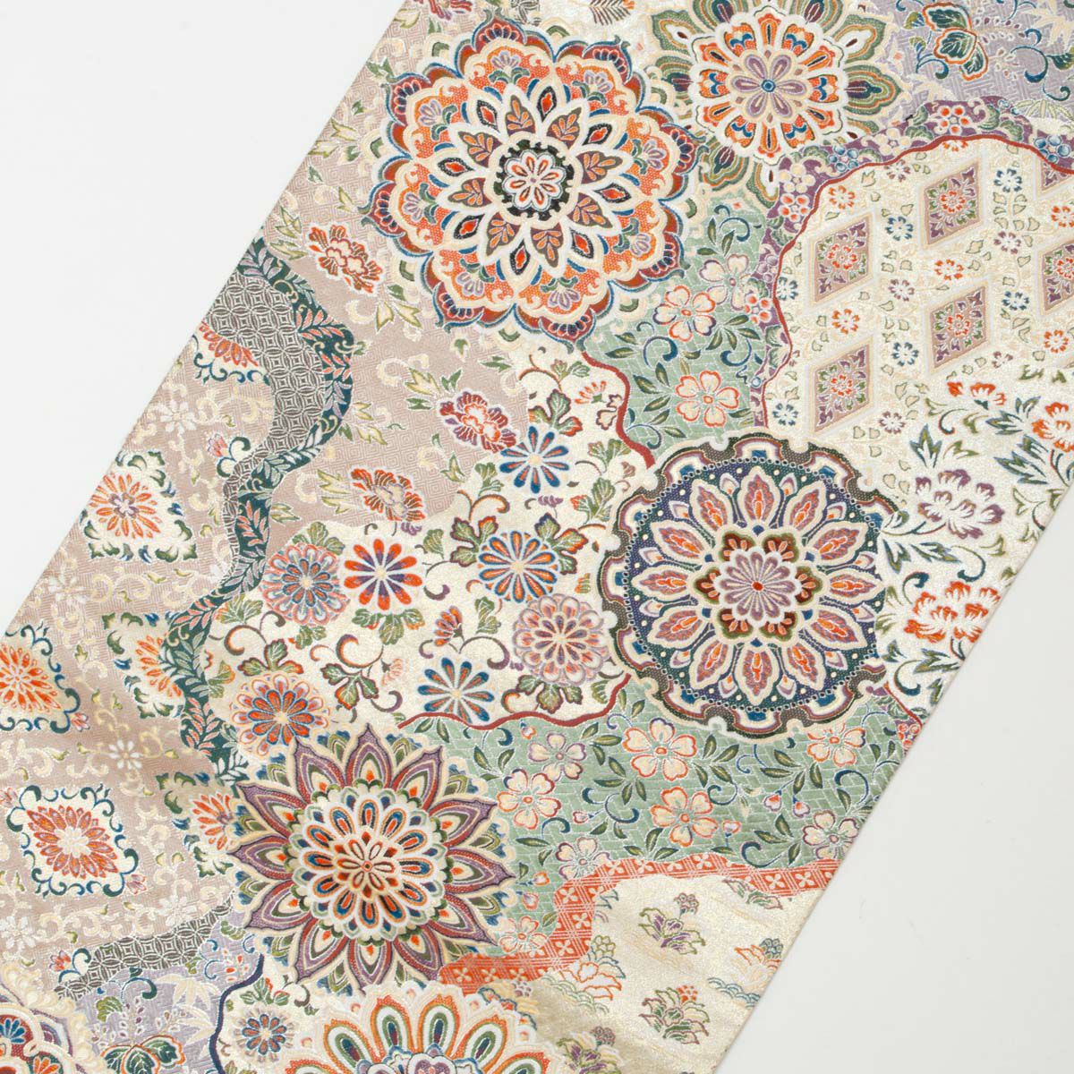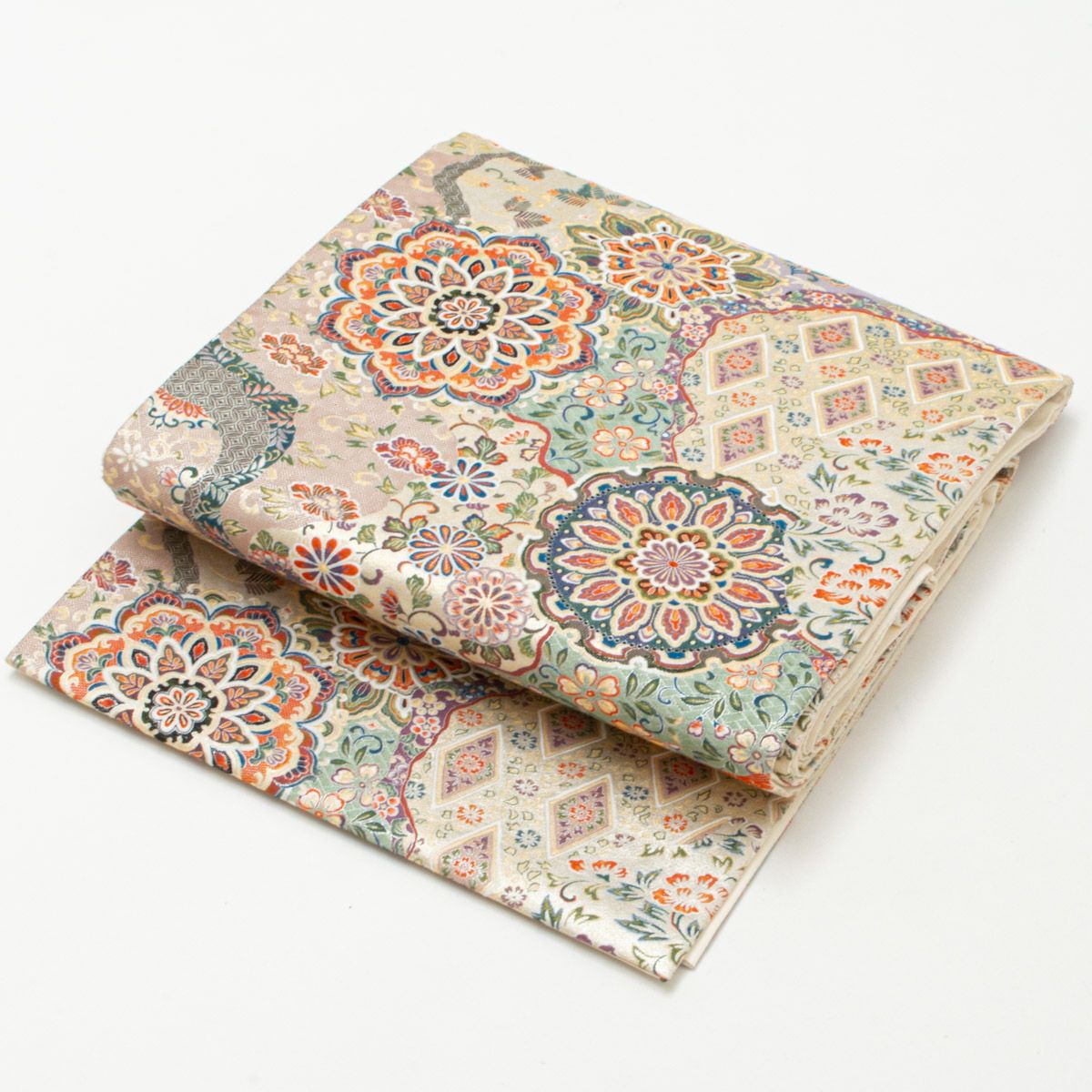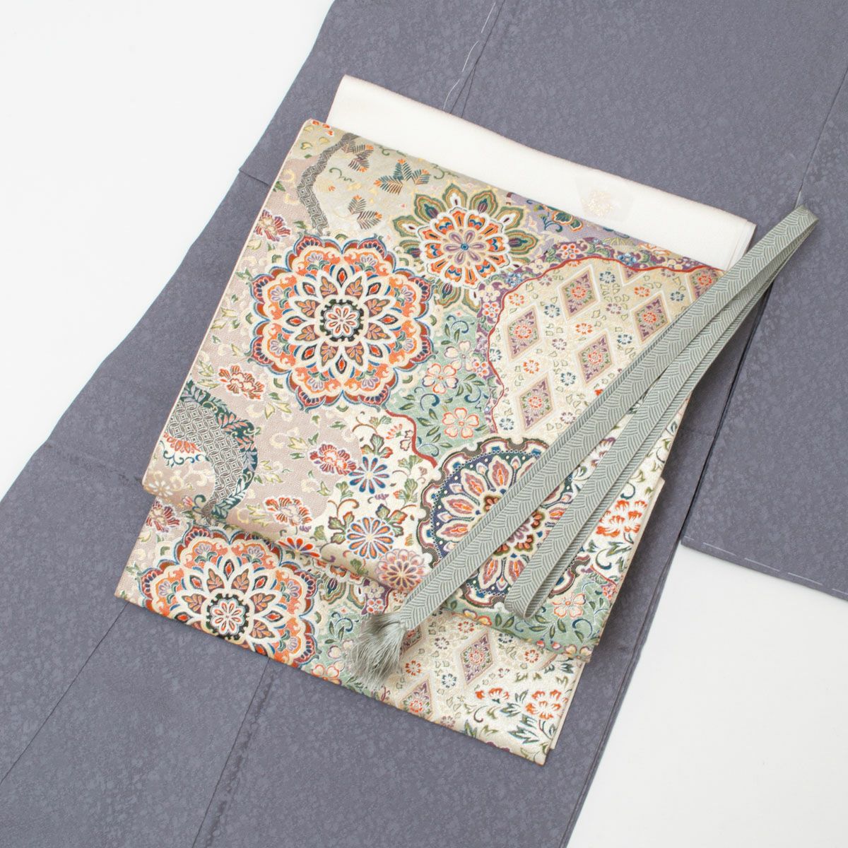 他の画像を見る 【前田眞織物】袋帯 唐織 草木染 金糸織 唐花丸紋 オフホワイト グレー 暈し横段 西陣織 正絹 礼装用 当店特別価格 ¥ 22,000 税込 SOLD OUT 詳細を見る お気に入りに登録する