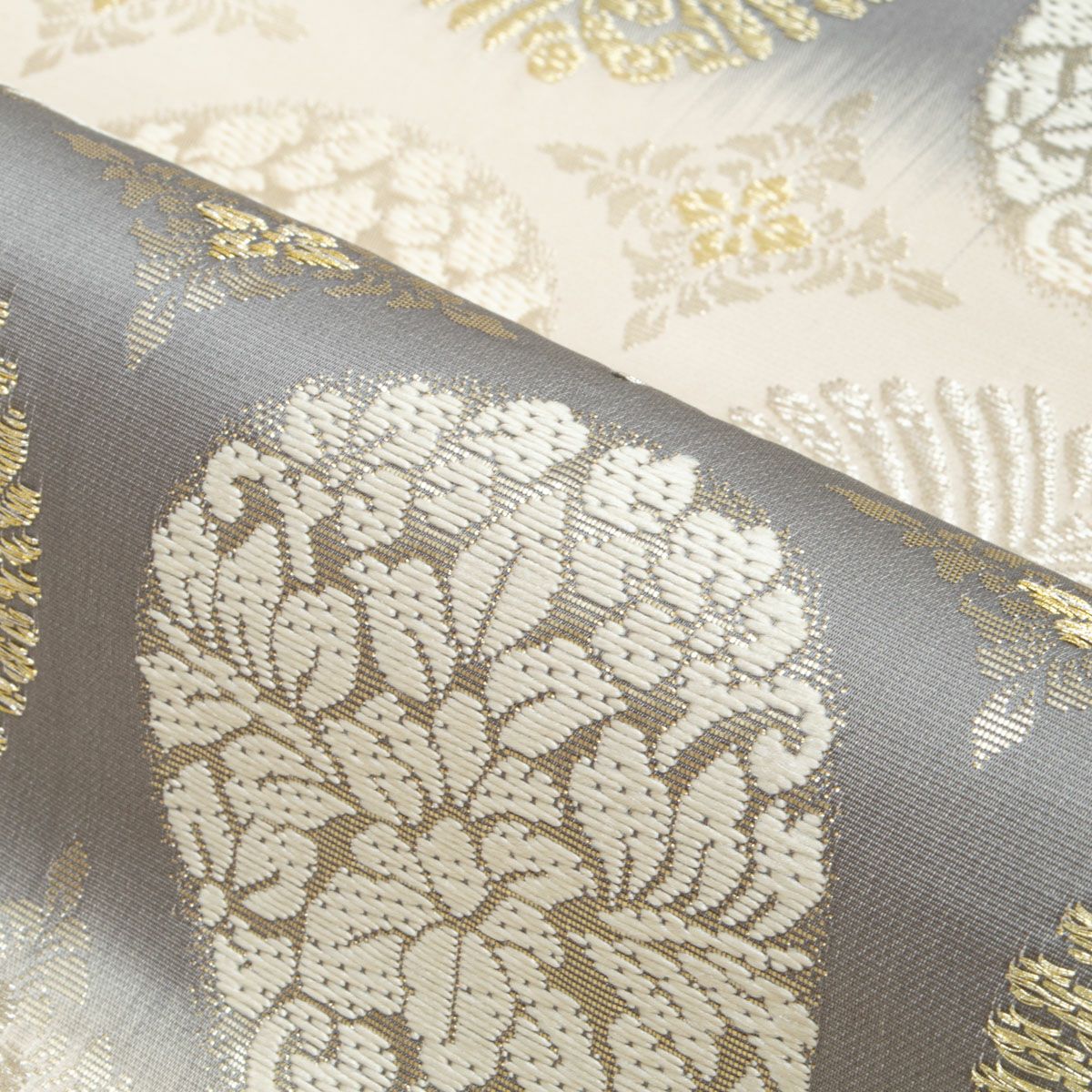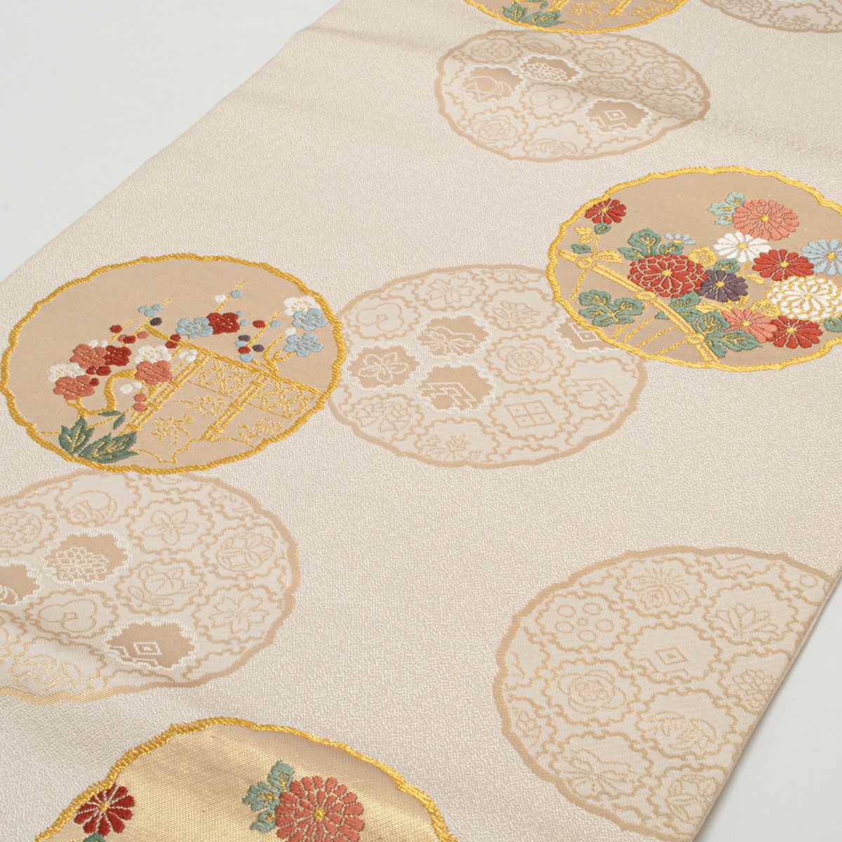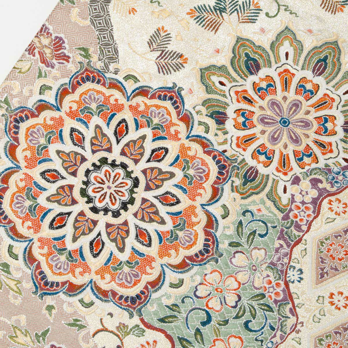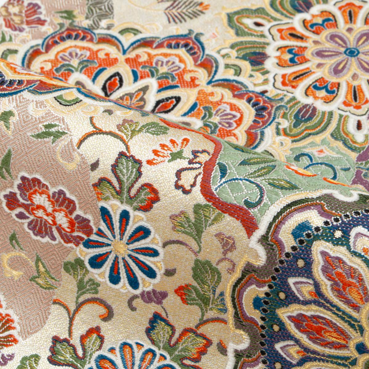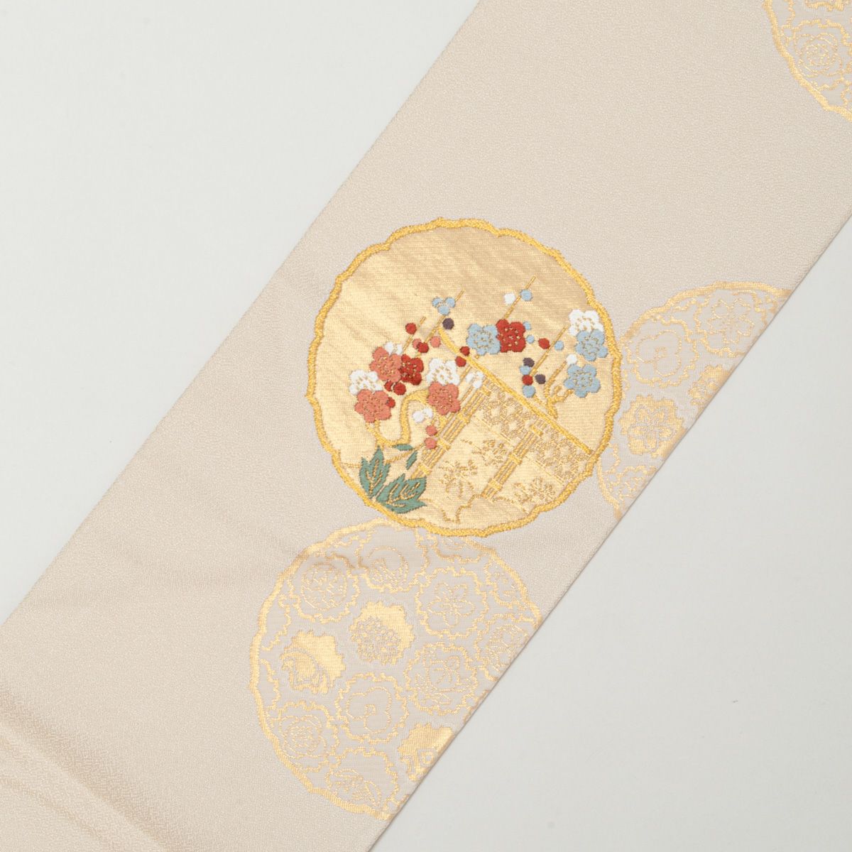 他の画像を見る 【前田眞織物】袋帯 唐織 草木染 金糸織 唐花丸紋 オフホワイト グレー 暈し横段 西陣織 正絹 礼装用 当店特別価格 ¥ 22,000 税込 SOLD OUT 詳細を見る お気に入りに登録する